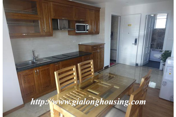 The total area of this apartment is 65 sq m, 01 bedroom and 01 bathroom. From windows, you can have a very good view of the corner of Hanoi city center.