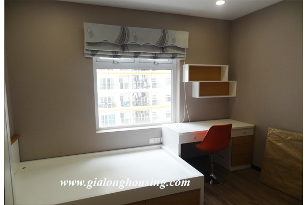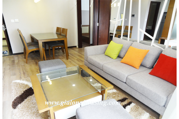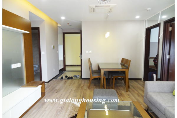 Apartment for rent in Hoa Binh Green City for rent. There are 2 bedrooms, 2 bathrooms, 1living room and 1 kitchen on total 70sqm . The apartment is designed in modern architecture, even on small area, the apartment always keep tidy and lovely look. Living area and dinning area are set on 1 surface where you can share gathering moment with your family. Each bedroom has a small window supplying natural bright and fresh air for your relaxing area. Kitchen and bathrooms are set up enough amenities for daily using.