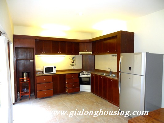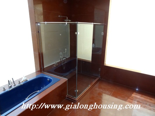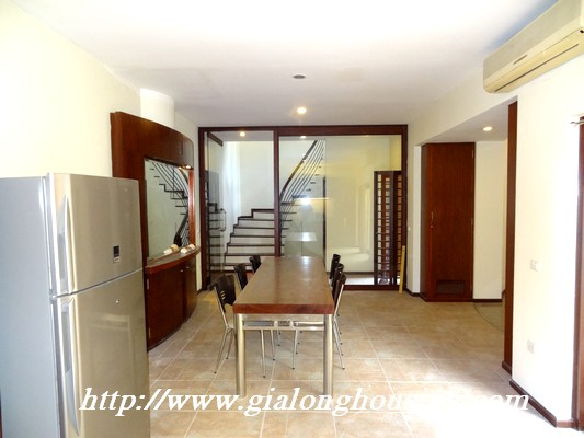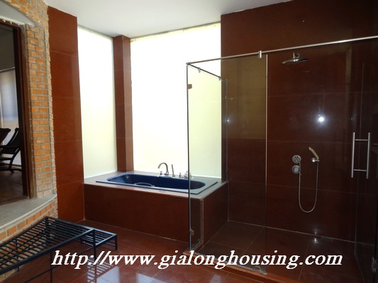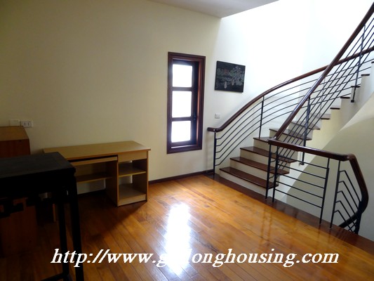 House with car garage is available for rent today. The unique design brings the house an unforgettable impression. The total area is 86 sq m with 03 bedrooms, 01 working room and 03 bathrooms, full furniture. This house is very nice and lovely with city view. There is a small courtyard with many green trees.
