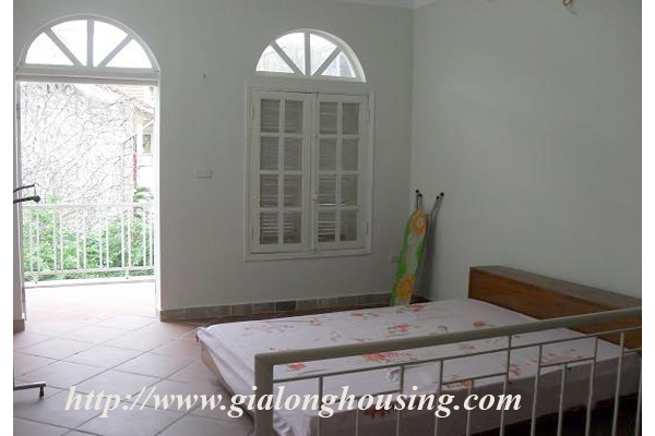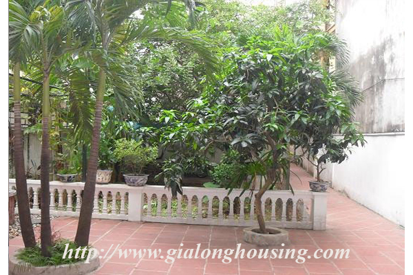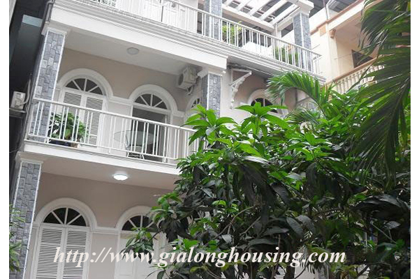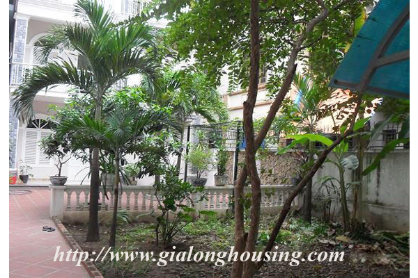 House for rent in Ngoc Ha alley, Ba Dinh district, Ha Noi. The land area is200 sqm construction 80sqm x 4 storey. It is inclusive 4 bedrooms, 4 bathrooms with bathtub, living room, kitchen. Fully furnished. In front of the house is a large garden with many trees and a big yard.