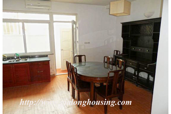 Court yard house for rent in Xuan Dieu area, Tay Ho district, Hanoi, the house has 04 floors, it has a nice front yard, a living room, a dining room, good kitchen, 04 bedrooms, each bedroom has its own bathroom, the house has wooden floor, full air-conditioner, TV, fridge, microwave, washing machine and dryer, .. Plus on the 4th floor, there is a nice roof terrace with open green view, and laundry area.