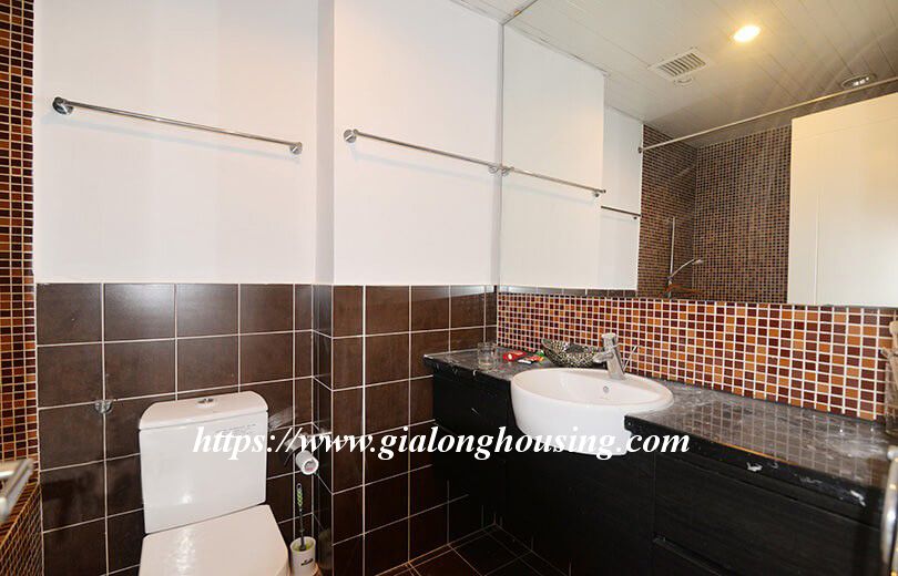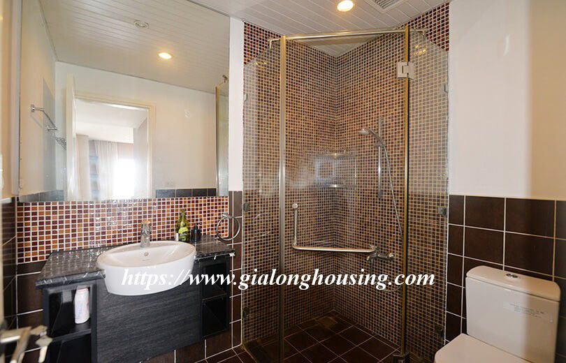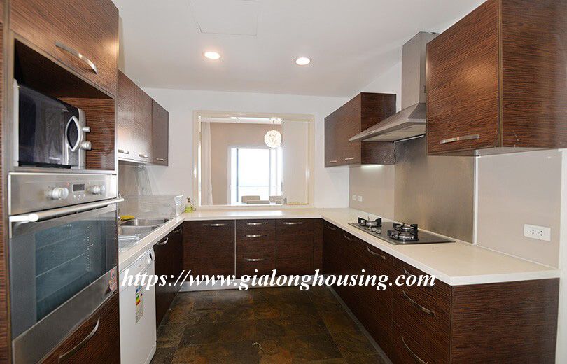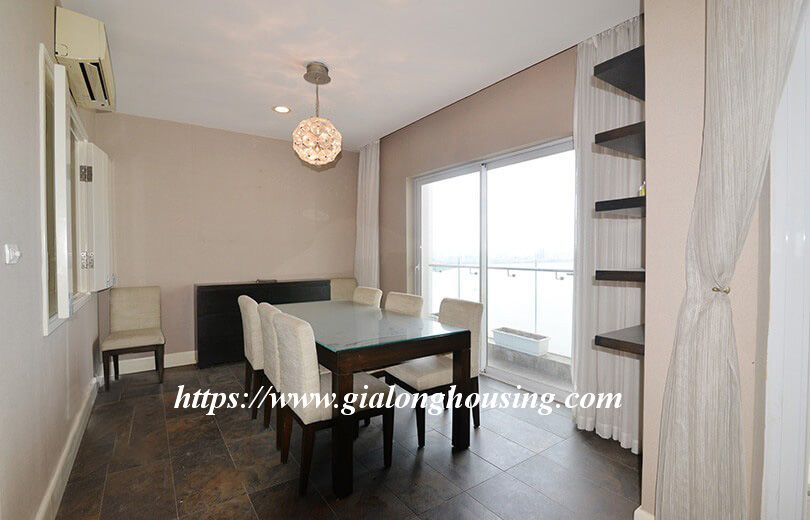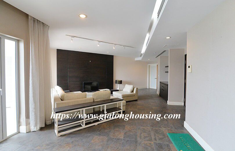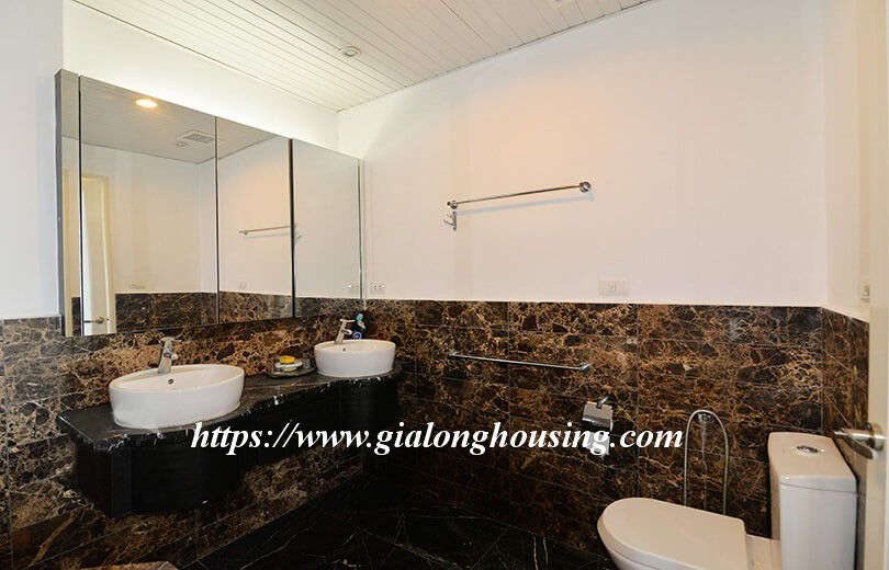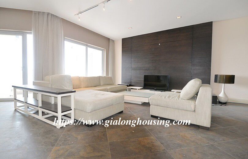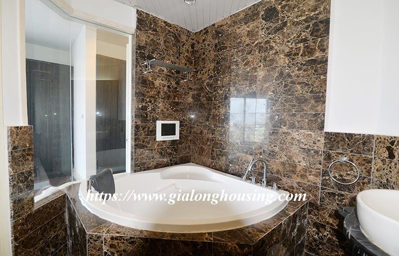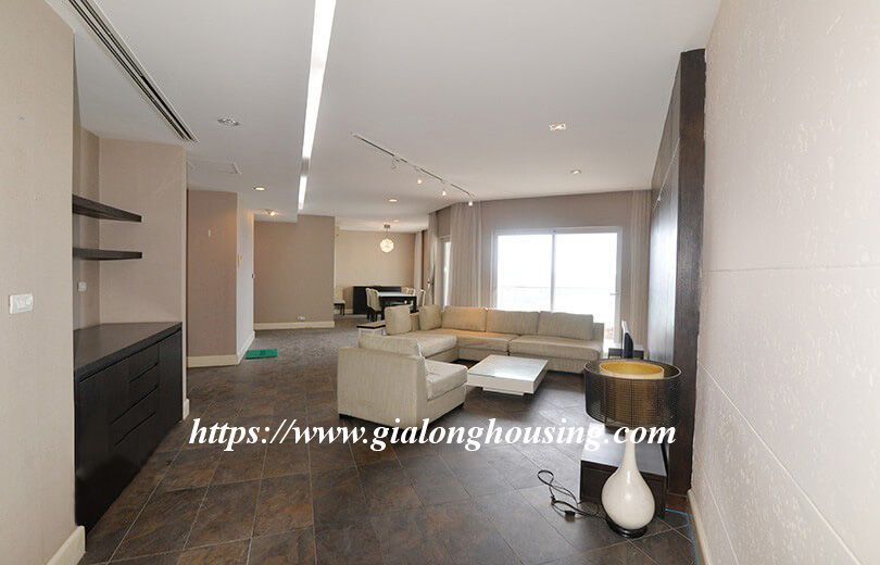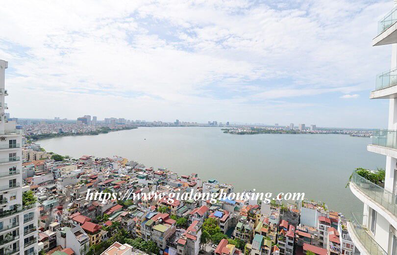 This huge apartment is located in Golden Westlake building with amazing lake view from both balconies and windows. The total area is 195 sq m, including 03 bedrooms and 03 bathrooms with bathtub. The apartment is full of sunlight and fresh air. The building has car parking area, outdoor swimming pool, gym, restaurants and kindergarten.