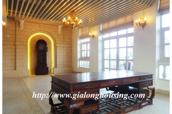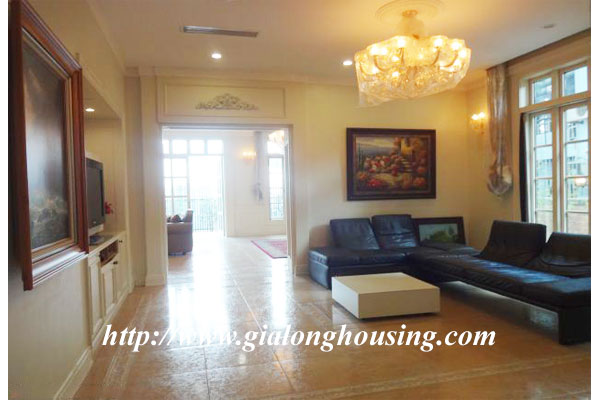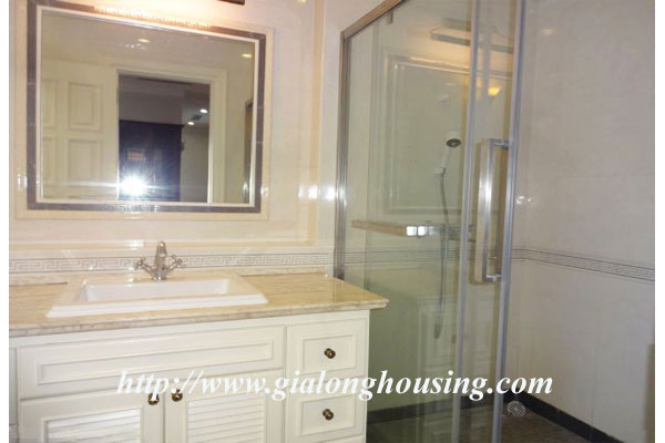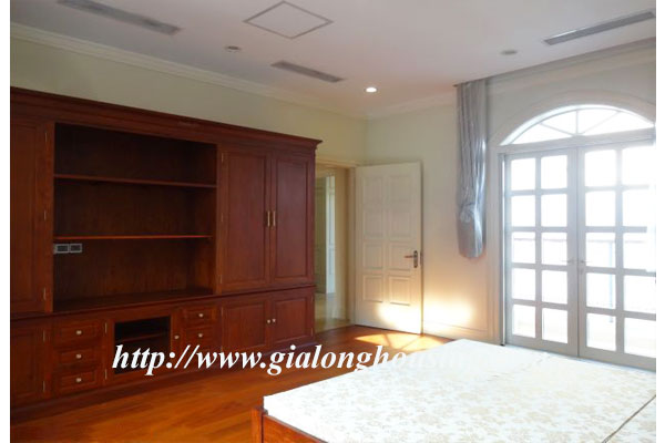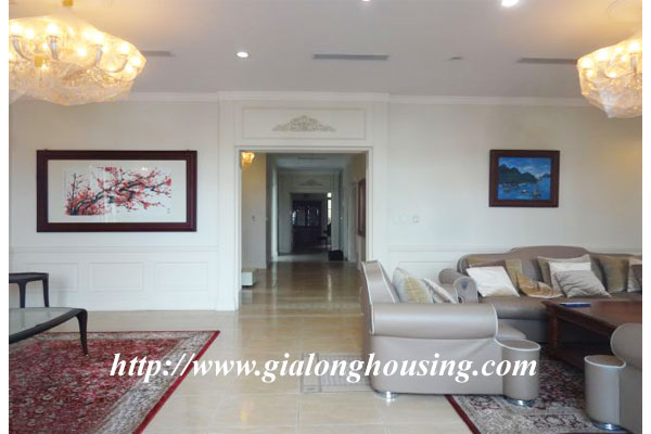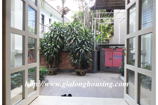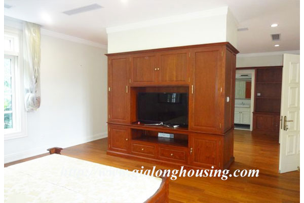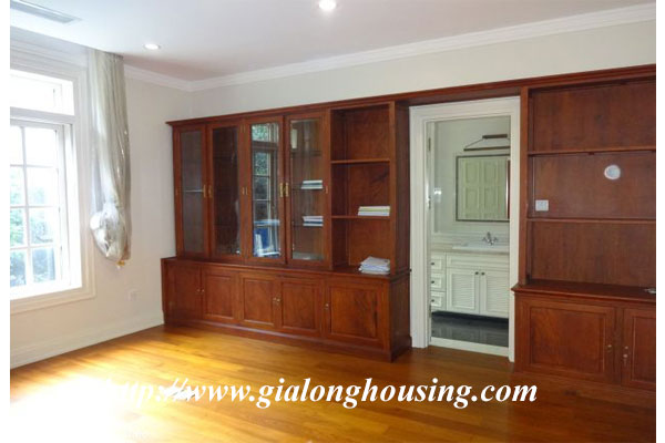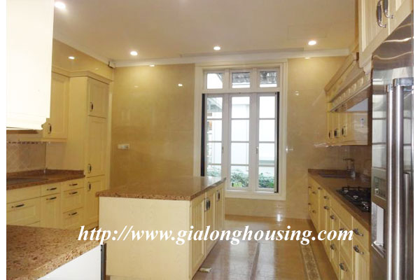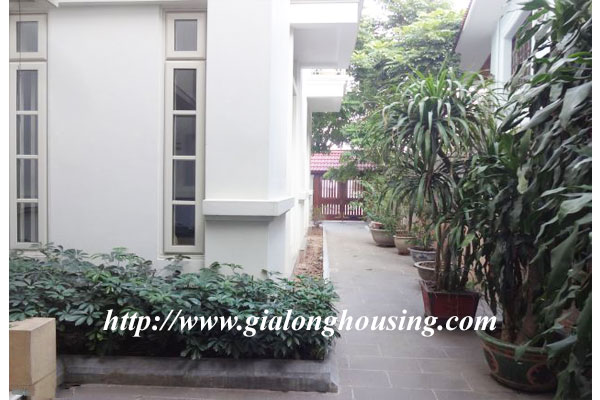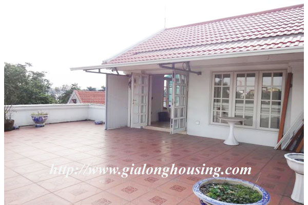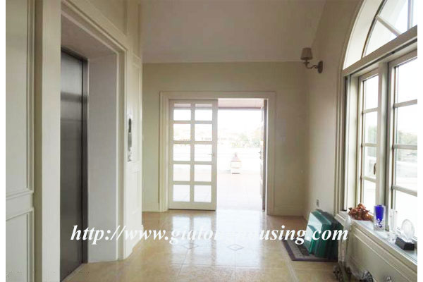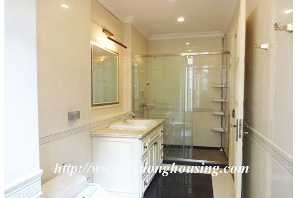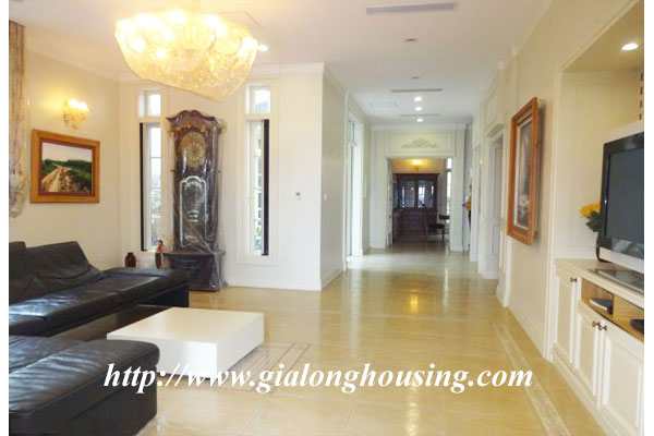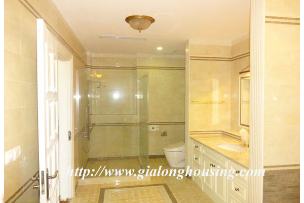 Luxury 5 bedroom villa for rent is located in Nghi Tam, Tay Ho, Hanoi. The land area is 500 sq m and the construction area is up to 200 sq m with 3.5 floors. The villa was designed with the inspiration of European Royal architecture style including 5 modern bedrooms, 5 bathrooms with showers and bathtubs, 2 spacious and luxurious living rooms, a comfortable dining room, and a charming kitchen with full utensils. All rooms are bright and airy due to lots of glass windows and green trees in the outside small courtyard. Spacious terrace can be used for BBQ party. It is suitable for big family with kids. Fully furnished with modern and charming furniture, wooden flooring. Price: $5500