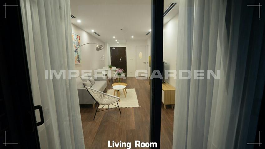 This brand new apartment is located at Imperia Garden, 203 Nguyen Huy Tuong, Thanh Xuan district. Being one of the newest and modern buildings in Hanoi, this apartment welcomes all the tenants to stay in long term. The building has swimming pool, restaurants, supermarket and playground for kids.