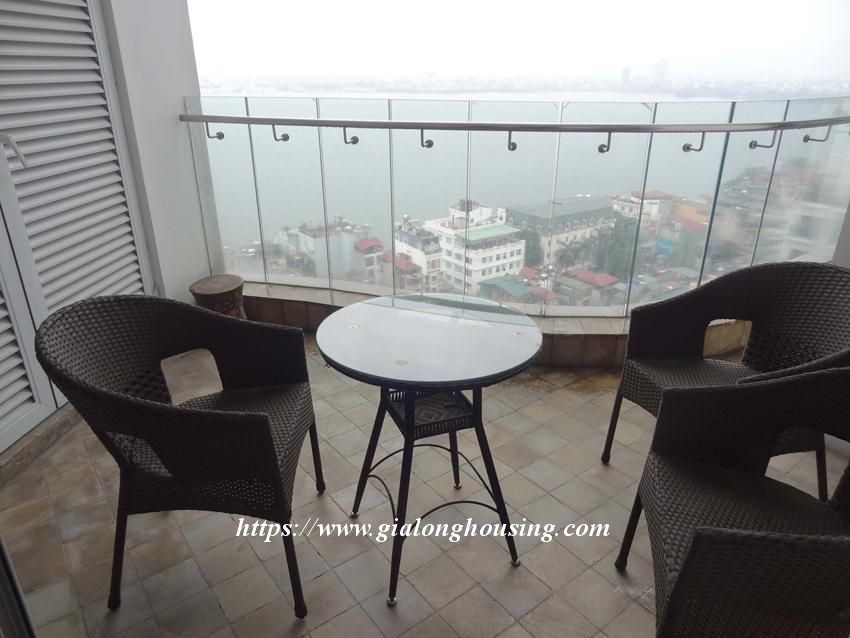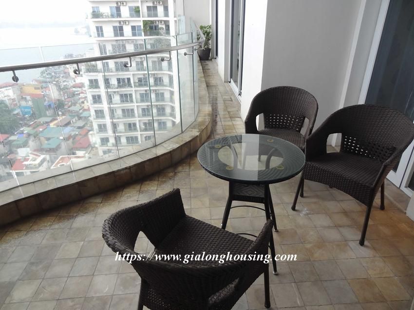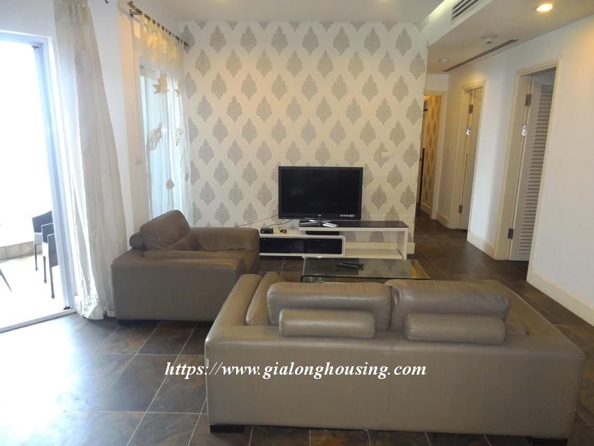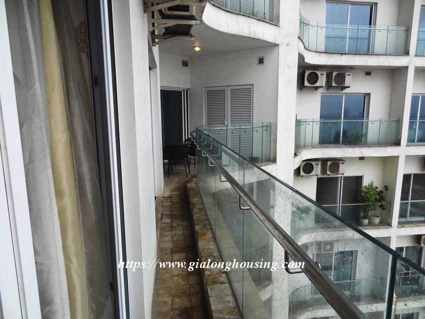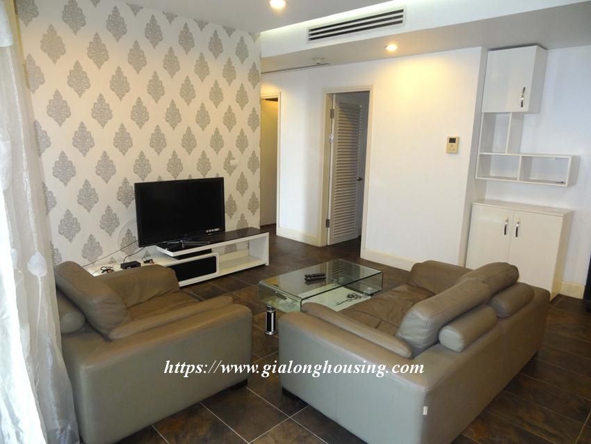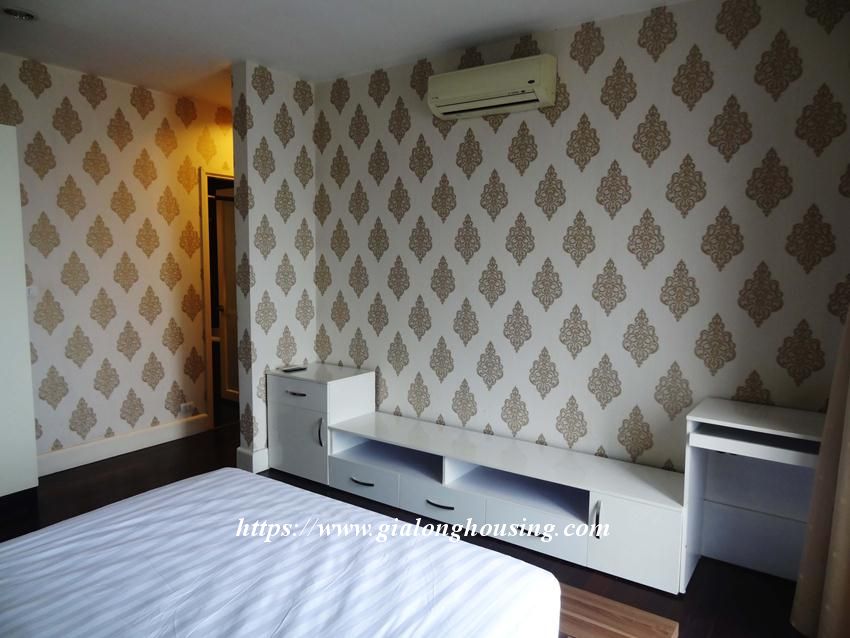 This is an 02 bedroom apartment for rent in Golden Westlake. The complex has 02 buildings with high quality services such as: gym, tennis court, swimming pool, security, receptionist, car parking, high speed internet. The apartment has good view and a lot of light. The total area is 117 sq m, included 02 bedrooms and 02 bathrooms, fully furnished