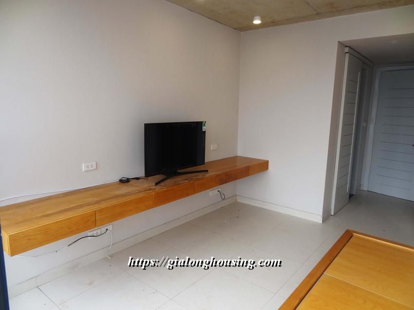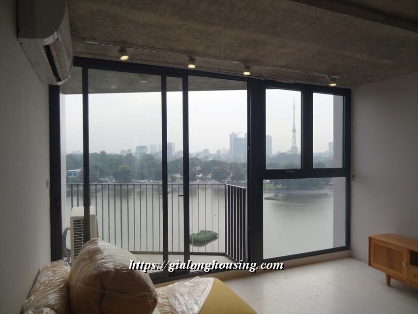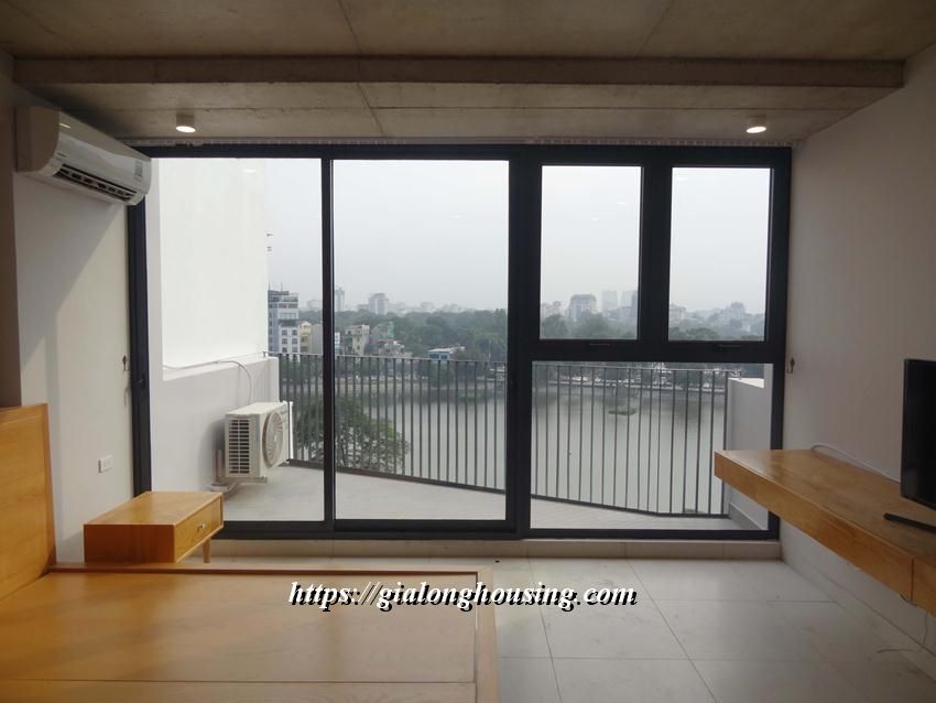 This brand new duplex serviced apartment is located on the top floor of a modern building. The windows and balcony face to the lake with amazing view. All the room luxuriate into the natural sunlight and fresh air. The land area is 45 sq m x 2 floors. There are 02 bathrooms, 01 bedroom and a bright living room.