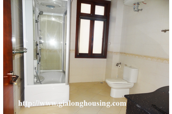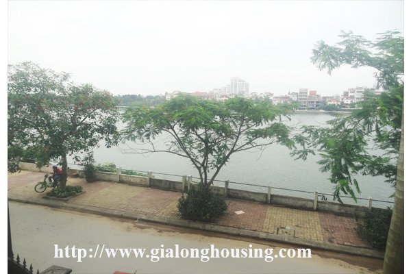 Lake front apartment for rent is in Nghi Tam. The total area is 200 sq m. The construction are is 120 sq m with 4 floors. There are 05 bedrooms and 05 bathrooms. The deign and layout is good. No furniture inside.
