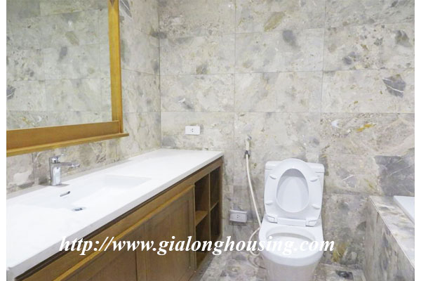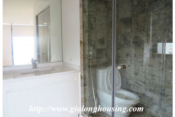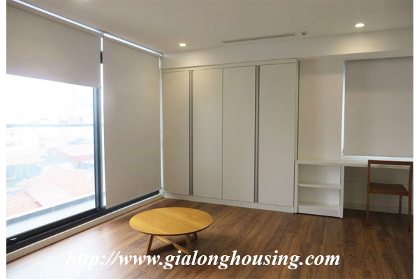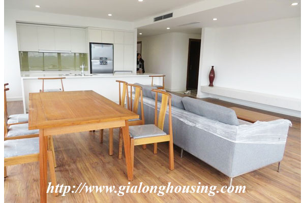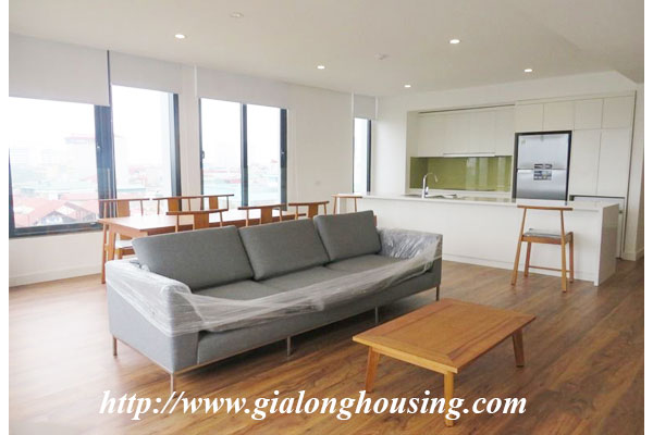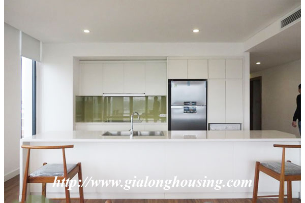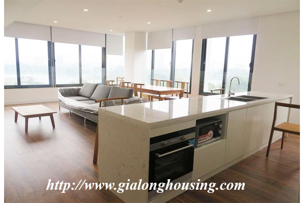 The apartment situates in Le Duan street, 10 minutes drive to Hoan Kiem lake, the apartment also has a beautiful lake view to Thien Quang lake due to many wide windows. There are 2 bedrooms, 2 bathrooms, 1 living room and 1 kitchen on total 115 sq m. The living room is combined with dinning area and modern kitchen on one floor. The kitchen is designed with kitchen island - also a bar for having good time with your friends. Each bedroom has a wide window looking to Thien Quang lake
