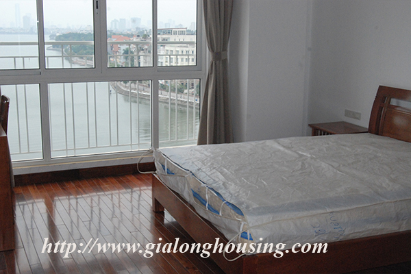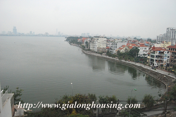 Lake-view serviced apartment rental in Xuan Dieu street. The construction area is 200 sq m composed of 3 bedrooms, 3 bathrooms with bathtub, nice living room and kitchen. Situated on a high floor, it has large balcony with nice view of Westlake, equipped high speed elevator. It has lots of natural light and fresh air coming from the lake. Apartment is provided fully furnished.
