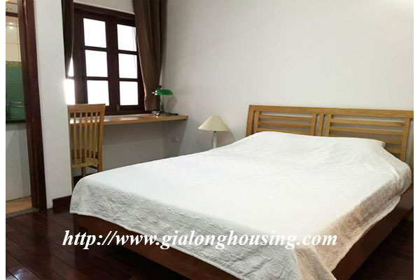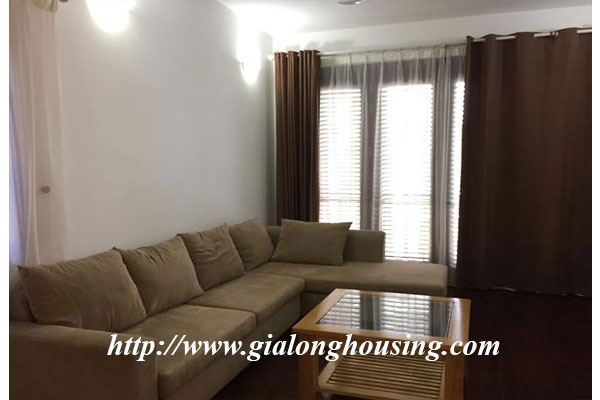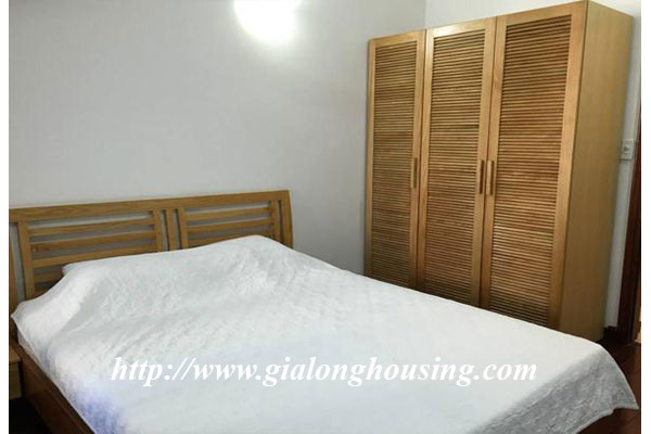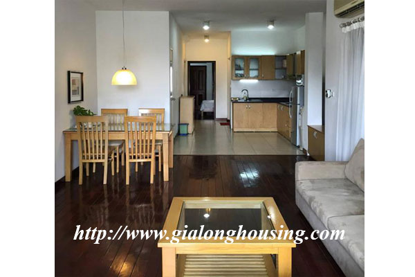 This apartment is locted in Pham Huy Thong street, Ba Dinh district. From the balcony and windows, you can see the Ngoc Khanh lake. The apartment is not far from Lotte Center, Daewoo hotel, Daeha shopping center. The total area i 70 sq m with 01 bedroom and 01 bathroom, All rooms are provided full furniture so the tenants can move in immediately.