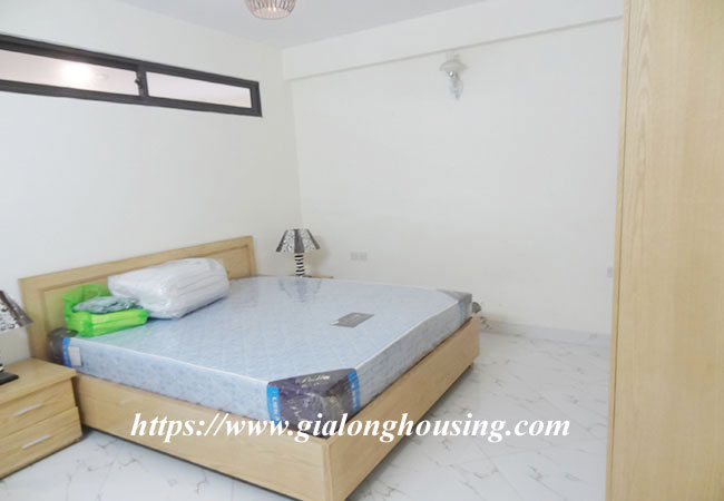 This is a very bright and nice apartment that located near Sheraton and Intercontinental 5 * hotel. The total area is 100 sq m with 02 bedrooms and 02 bathrooms. From the big glass windows, you can see a corner of West lake and Intercontinental hotel. The rent is included cable TV, internet, tap water, motorbike parking.