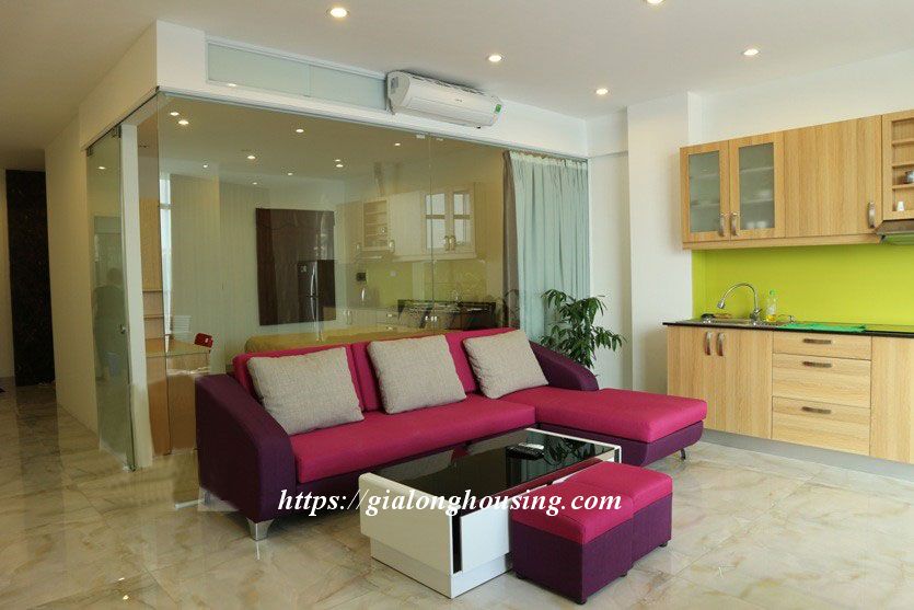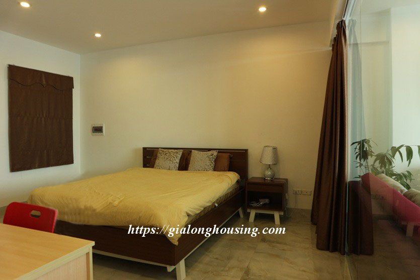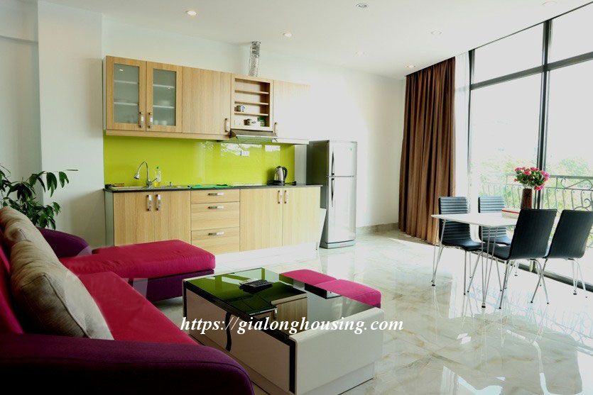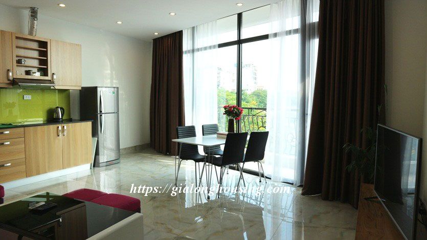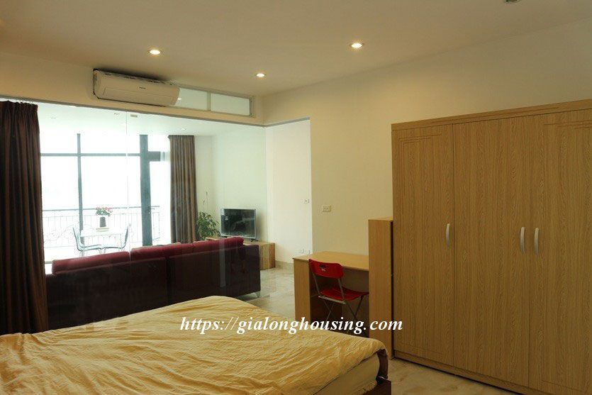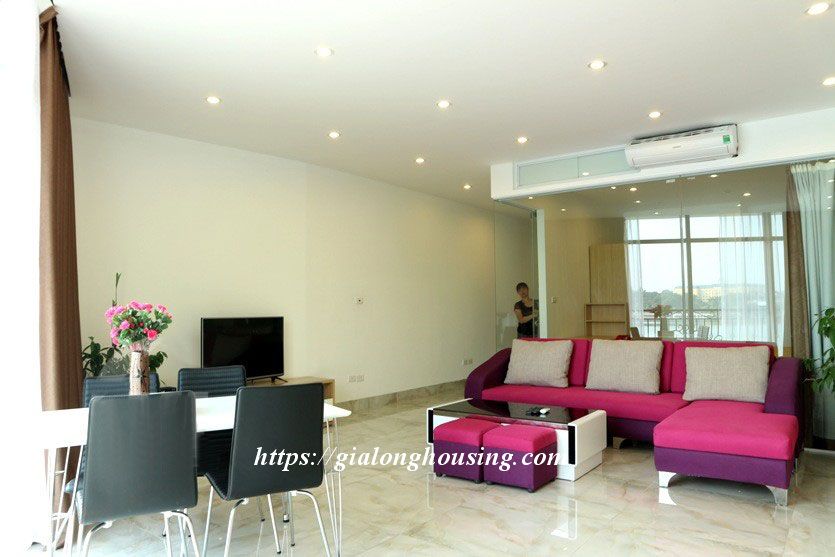 This well maintained 1 bedroom apartment is available furnished. There is a very large living area with open plan kitchen. The balcony overlooks Truc Bach lake. Situated just off the kitchen is a large bedroom with glass wall. The property is lake facing which means the apartment will benefit from plenty of natural light. The bedroom is also very spacious and has a king size bed.