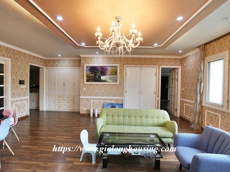 This nice apartment is located at low floor of Ciputra building. The whole apartment is full of sunlight and fresh air due to the western design. The total area is 126 sq m, including 03 bedrooms and 02 bathrooms. The furniture and equipment are all new and comfortable for the tenants to stay in long term. The tenants can enjoy the swimming pool, golf court, gym and international schools.