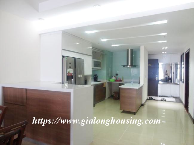 This large apartment is located in the middle floor of R 5 building, with an open view to the city. The total area is up to 132 sq m, including 02 bedrooms and 02 bathrooms. The whole apartment is full of sunlight and fresh air. The open kitchen and the spacious living room is the impression point of the apartment. The second bedroom has window that allows the natural light to light up the room.