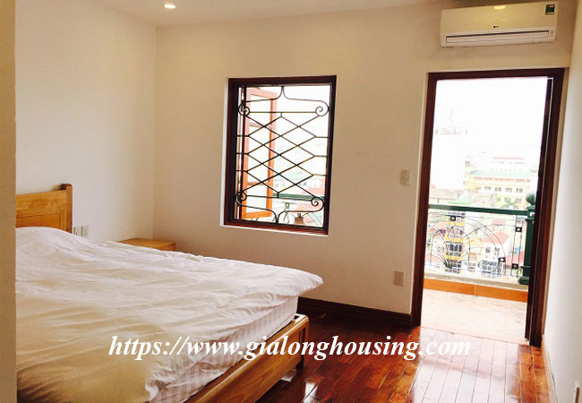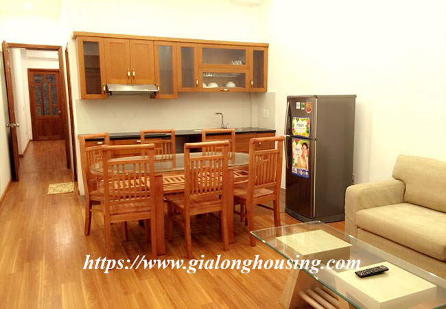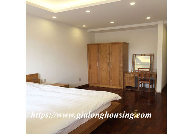 This is a large serviced apartment that is very near Temple of Literature, Hanoi city centre. The total area is 120 sq m with 02 bedrooms and 02 bathrooms. All rooms are bright and full of natural light. The apartment is fully furnished and the tenants can move in immediately. The rent is included : cable TV, wireless internet, tap water.