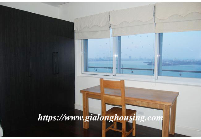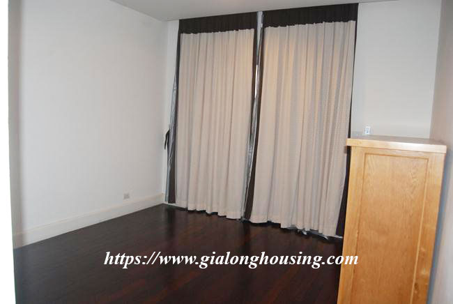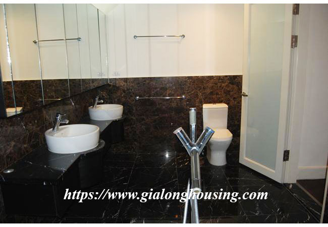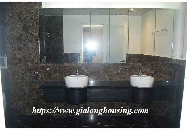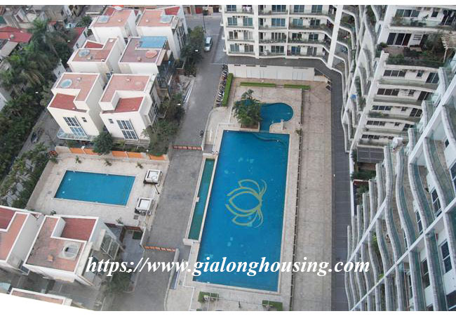 The total area is 225 sq m. There are 04 bedrooms and 03 bathrooms, that is enough space for all family and/or friends. The whole rooms are bright and get natural light and fresh air from big balcony and large glass windows. The apartment is fully furnished and the tenants can move in immediately. The tenants can use swimming pool, gym, mini mart, professional management.