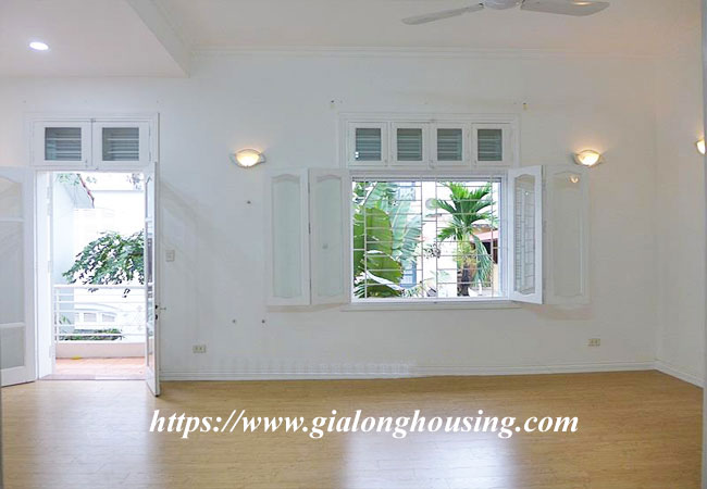 This house is located in quiet lane of Tay Ho street, Tay Ho district, Hanoi. The land area is 250 sq m. The surrounding yard and garden bring the fresh air, open space for the house. The whole house is bright and nice with many windows and balconies. There are 4 bedrooms and 4 bathrooms. The house has no furniture so you can set up your own ones.