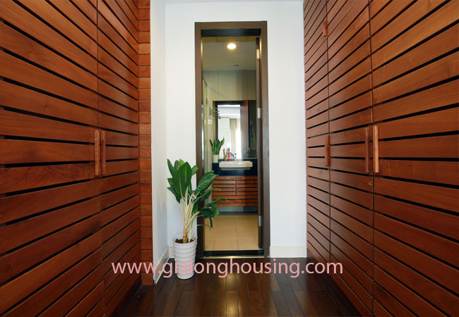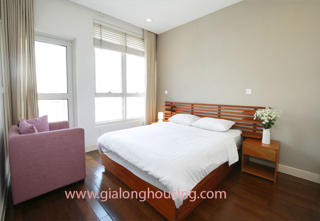 This apartment is fully furnished with wooden floor and well equipped with modern wooden furniture. It’s provide with lots of little decorations such as pots of plants, paintings and little pots. All of the bedrooms inside this flat can get lots of natural light from windows and balconies, to fill this apartments with fresh air.