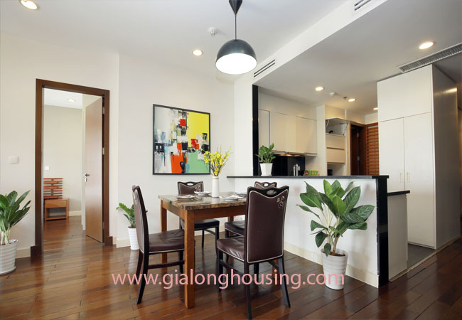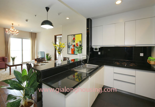 The luxurious 03 bedroom apartment for rent in Lancaster hanoi, has using area of 126m2, with 03 bedrooms, living room combined with dining area and opened modern kitchen,