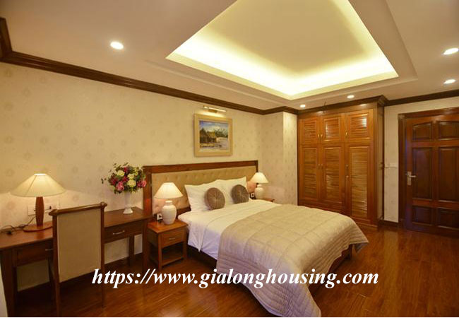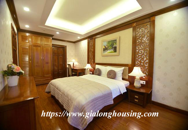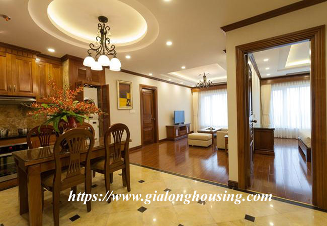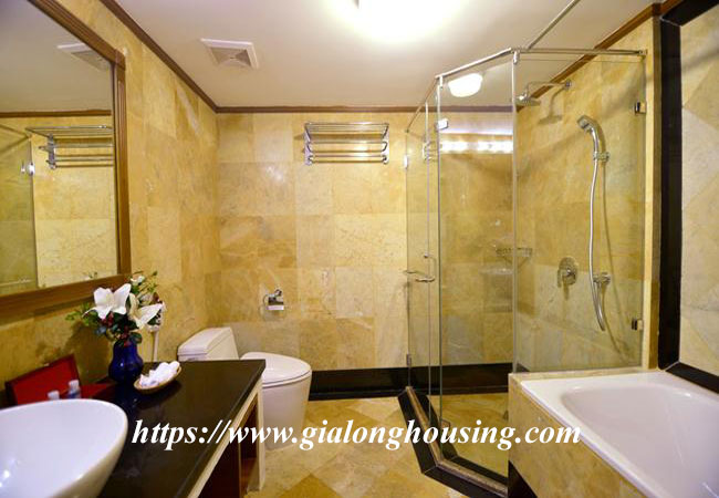 Luxurious building is located in Truc Bac area, the middle place between Hanoi Old Quarter and Tay Ho district. The building is managed by the professional company. The building has gym, security, receptionist and cleaning service. The total area of this apartment is 100 sq m, included 02 bedrooms and 02 bathrooms. All furniture are modern and high quality, suitable for all your daily request.