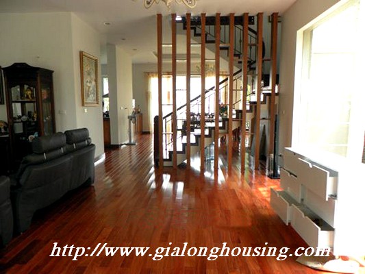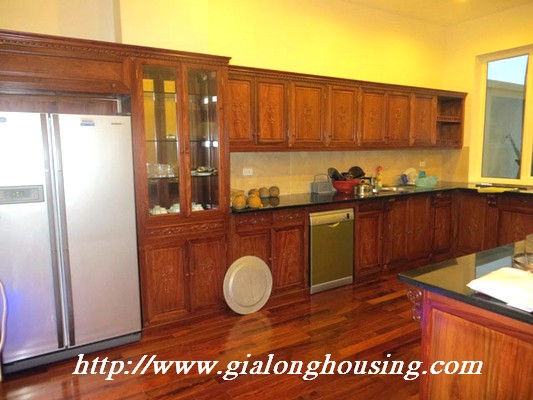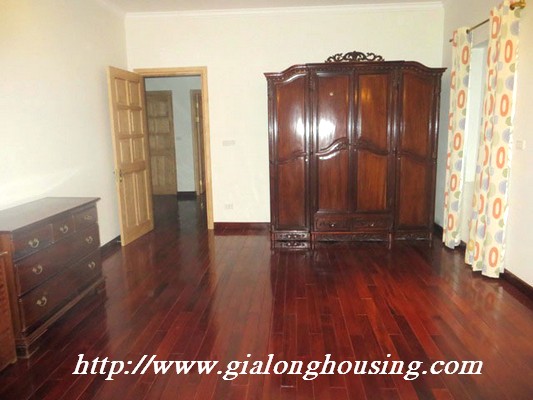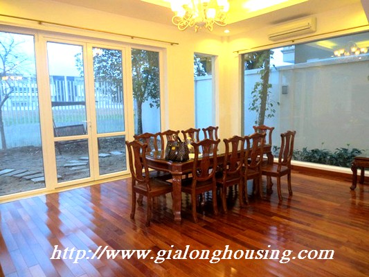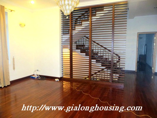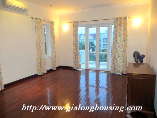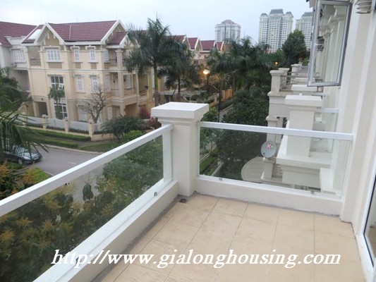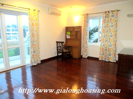 Luxurious furnished villa for rent in Ciputra area, Hanoi. It has a nice courtyard in front of the house and a beautiful garden with grass lawn, the villa has a double sized living room, nice dining room and a modern kitchen with lots of storage space, built-in oven, dish washer and a big fridge. It has 04 bedrooms, 01 family room, a balcony and a nice terrace with open view to a park. The villa also is provided with high standard of furniture, natural wooden floor, large windows.... All the rooms are well equipped and furnished, full Air-conditioners, LED TVs, washing machine and dryer...Well designed villa, on the second floor, there are 02 bedrooms, 02 bathrooms and a family room; on the 3rd floor - it has 02 bedrooms and 02 bathrooms, plus a working room