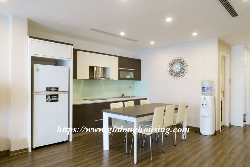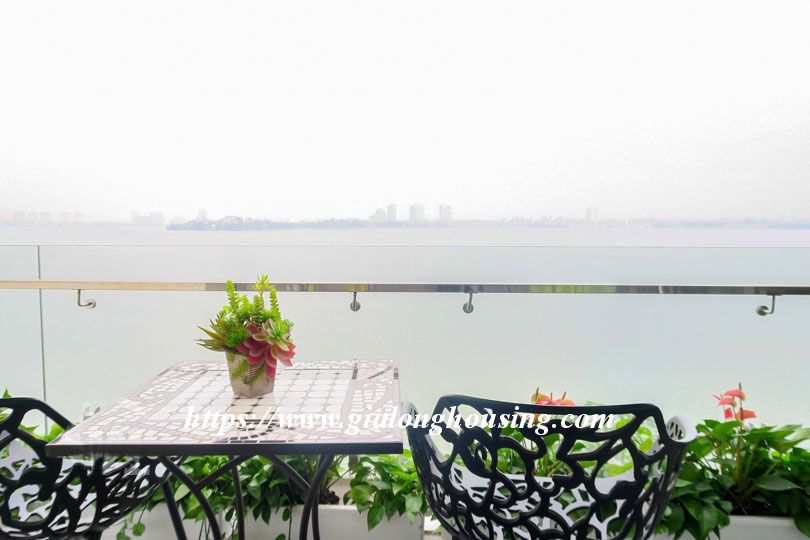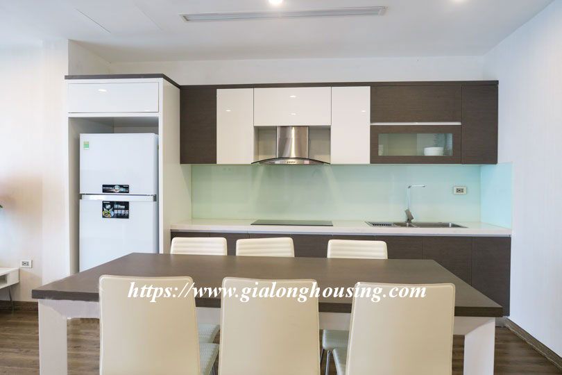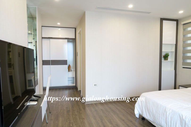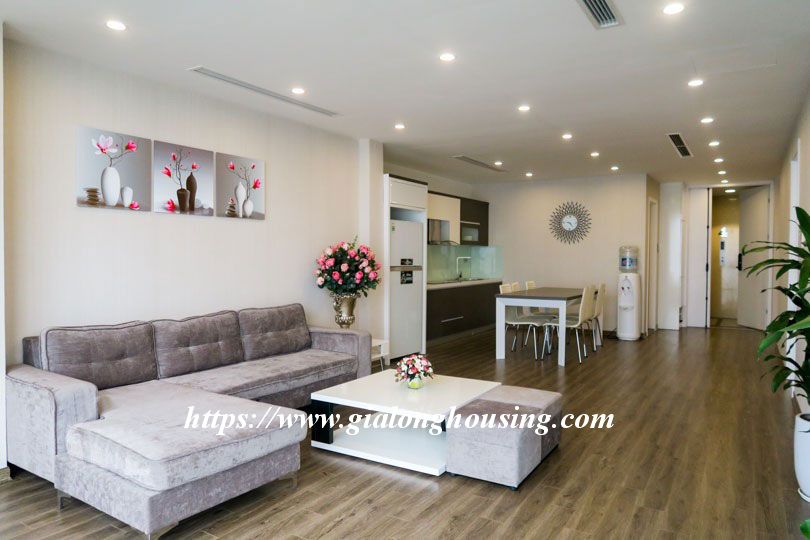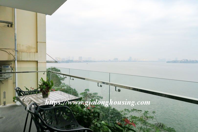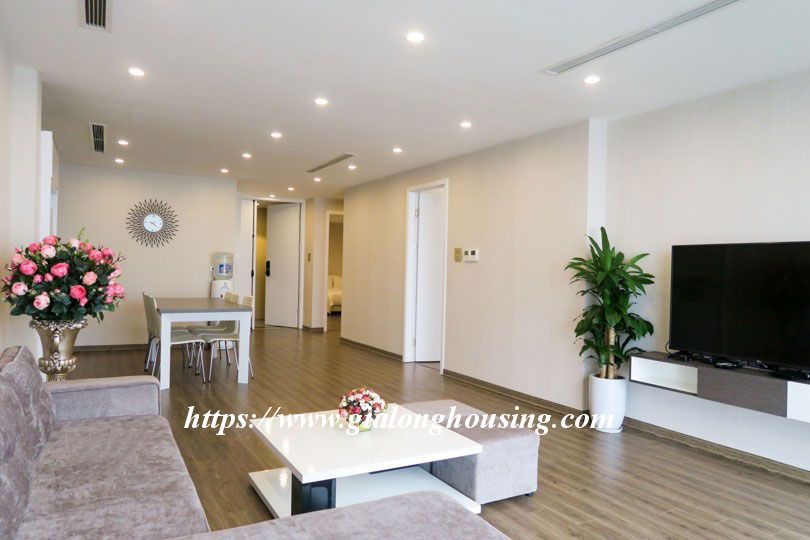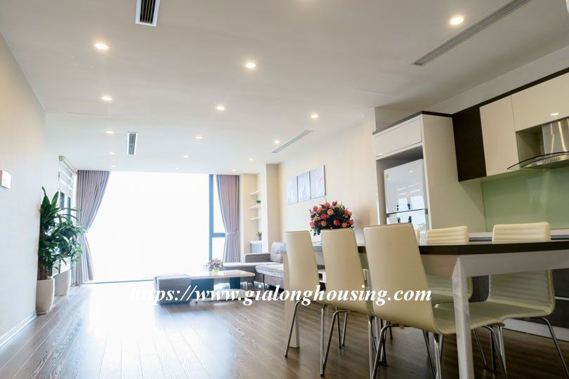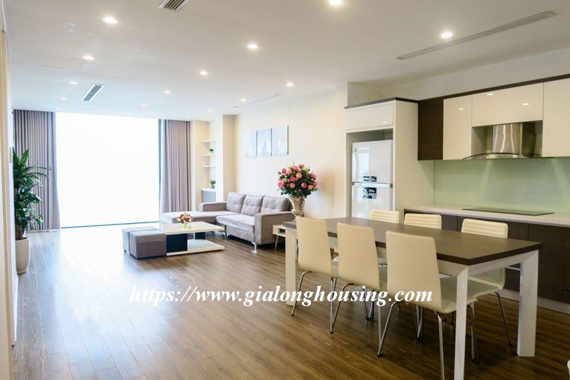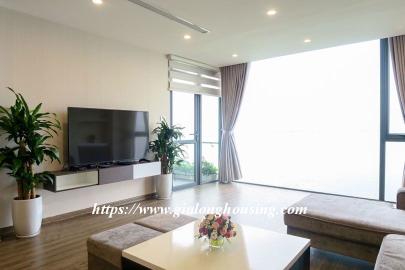 Brand new luxurious lake view apartment is located in Nguyen Dinh Thi street, not far from Ba Dinh and Hoan Kiem district. The total area is up to 133 sq m, including 03 bedrooms and 02 bathroom. The amazing view can be seen from the living room and the balcony of the master bedroom. The whole apartment is full of sunlight and fresh are with modern furniture.