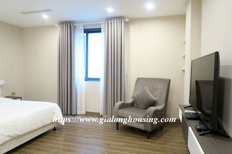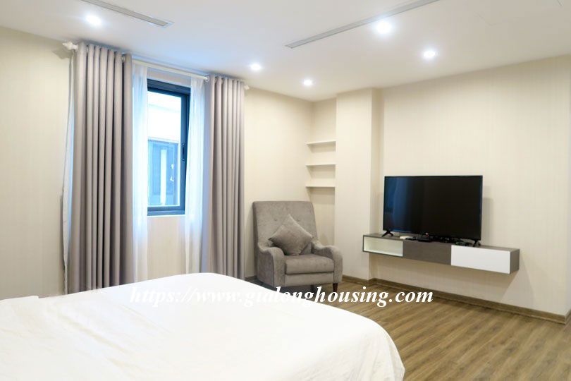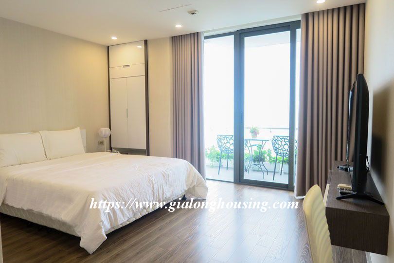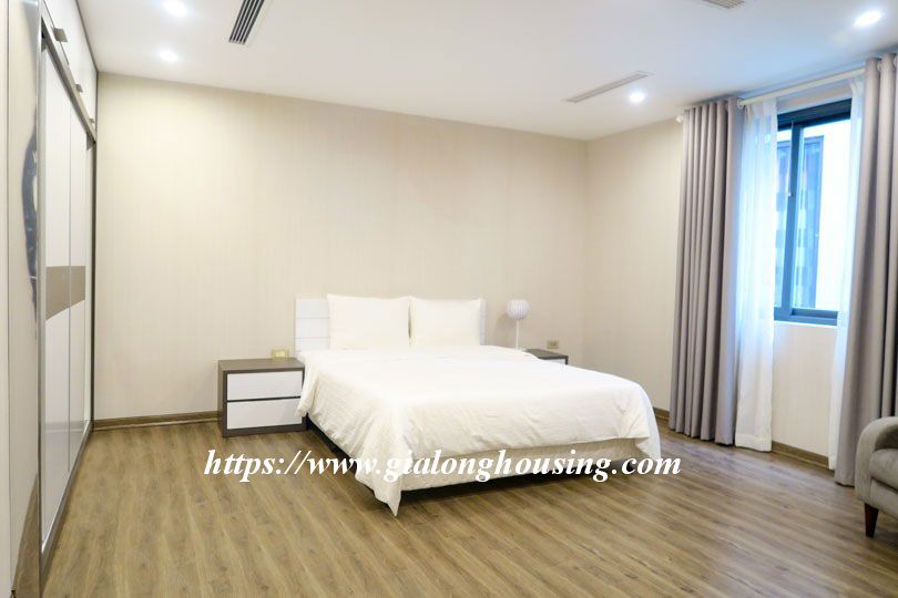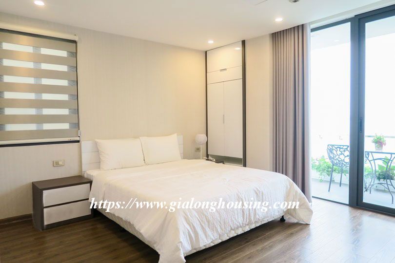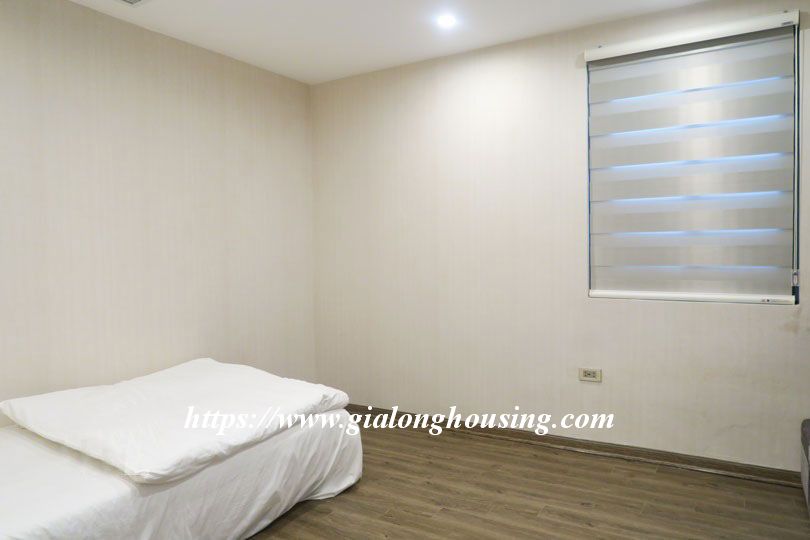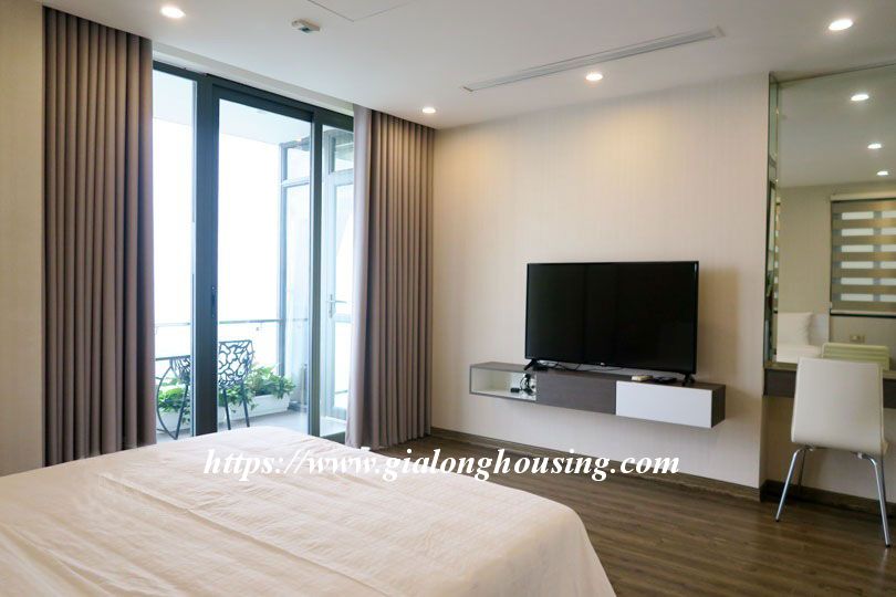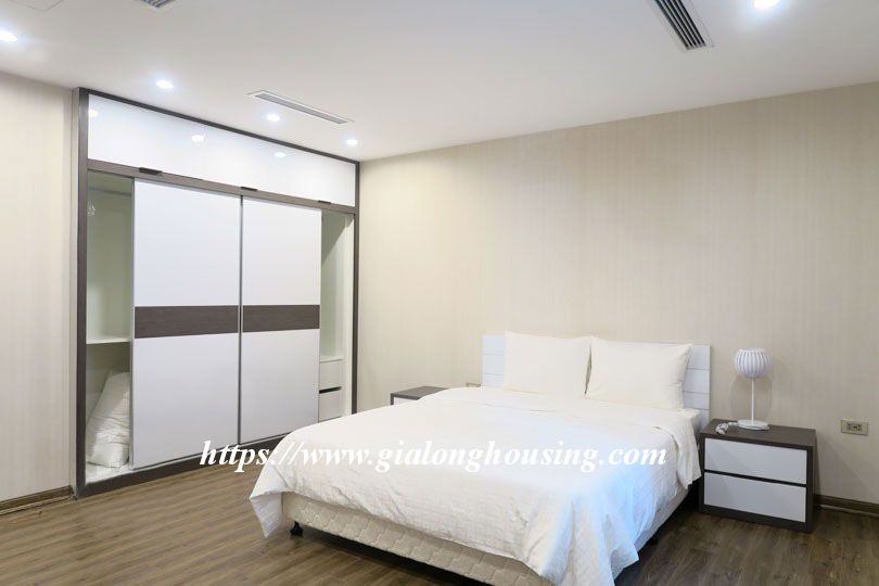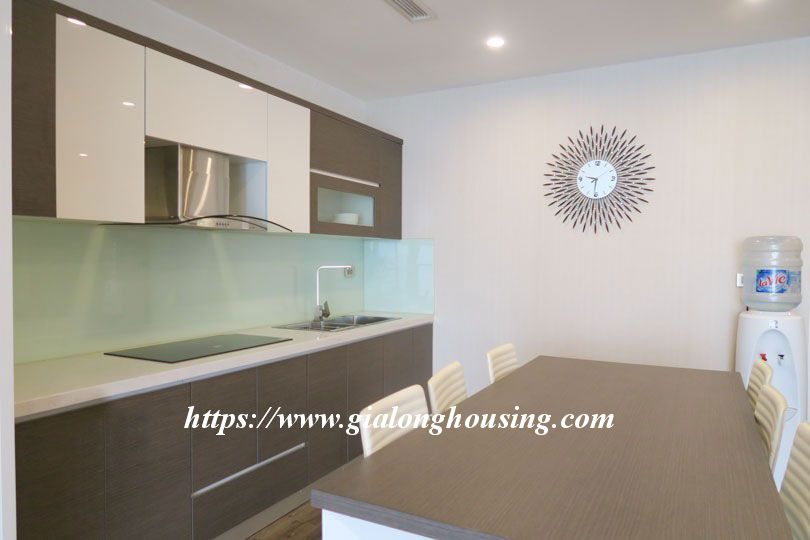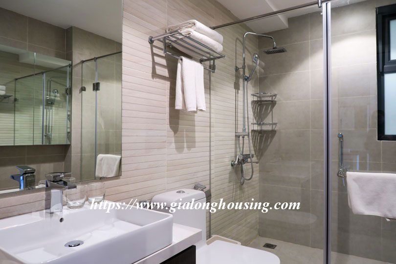 Brand new luxurious lake view apartment is located in Nguyen Dinh Thi street, not far from Ba Dinh and Hoan Kiem district. The total area is up to 133 sq m, including 03 bedrooms and 02 bathroom. The amazing view can be seen from the living room and the balcony of the master bedroom. The whole apartment is full of sunlight and fresh are with modern furniture.