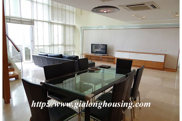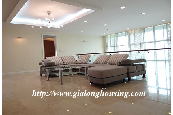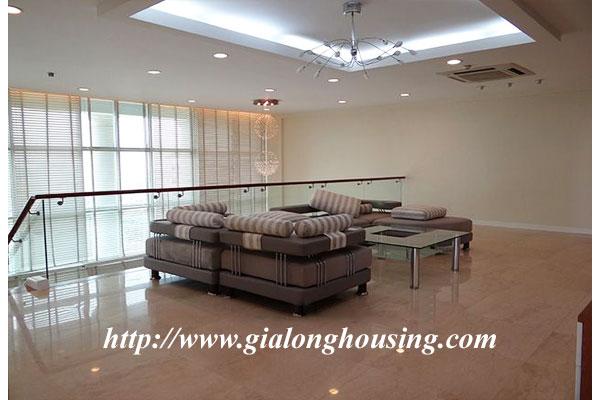 This is a very spacious and luxurious apartment - penthouse in P tower, Ciputra urban area. The total area is 334 sq m with 02 floors. The whole apartment is designed in modern and simple style that can be very suitable for all tenants. There are 04 bedrooms and 03 bathroms. All furniture and equipment are fully provided by the landlord.