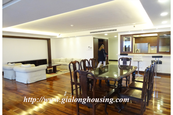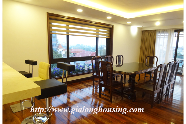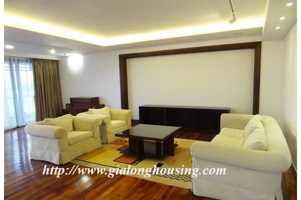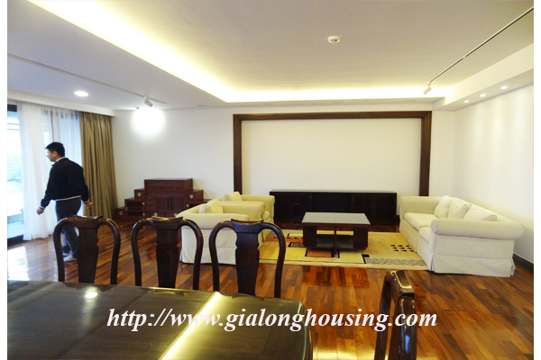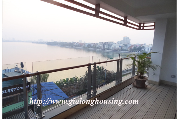 Fabulous lake view, high quality finished apartment for rent, located on Xuan Dieu Street,Tay Ho district, facing to the lake, 240 sq m apartment composed of a nice living room with a good sized balcony over-looking to West lake, a modern kitchen with lots of storage space, oven, fridge, microwave, kitchen utensils, there are 03 bedrooms, 03 bathrooms, this apartment has nice wooden floor, lots of light,