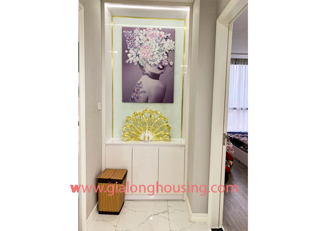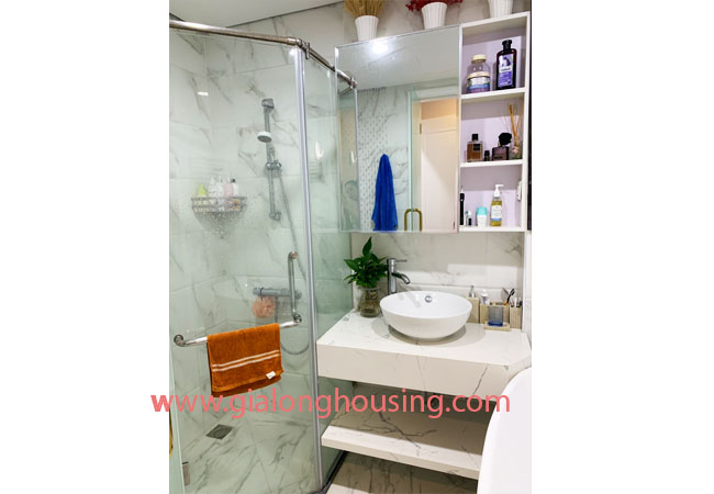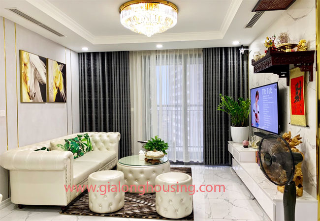 This luxury apartment for rent is located in P5 building, Park Hill Premium Hanoi. It has total living area of 108 sqm, modern design with fully furnished and equipment. It is combined an open living room is delicately decorated with ornate art deco displays, well-fitted kitchen and dining area, 03 bedrooms with All bedrooms have plenty of light, 02 bathrooms.Wall papers keep the apartment clean.