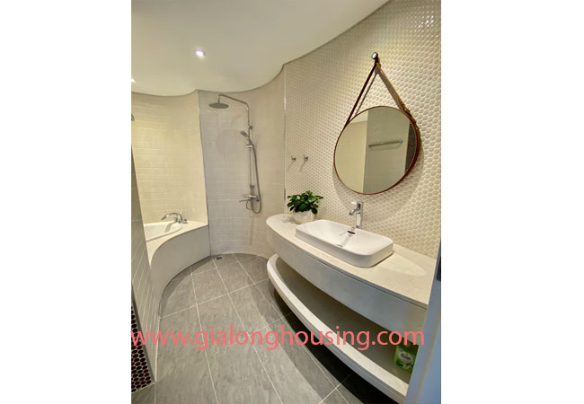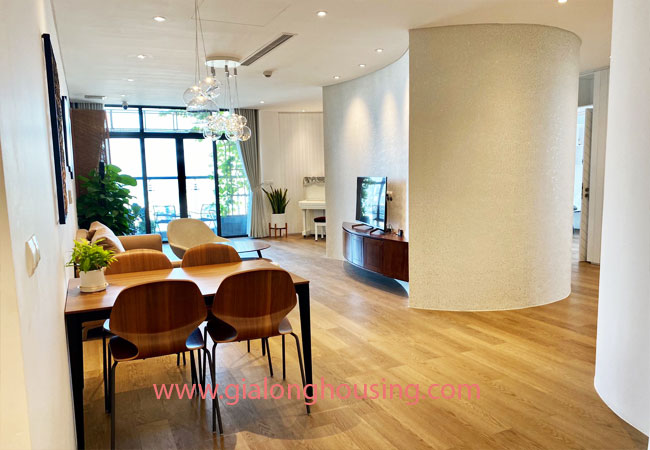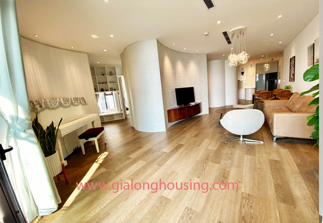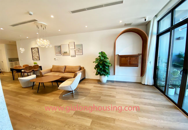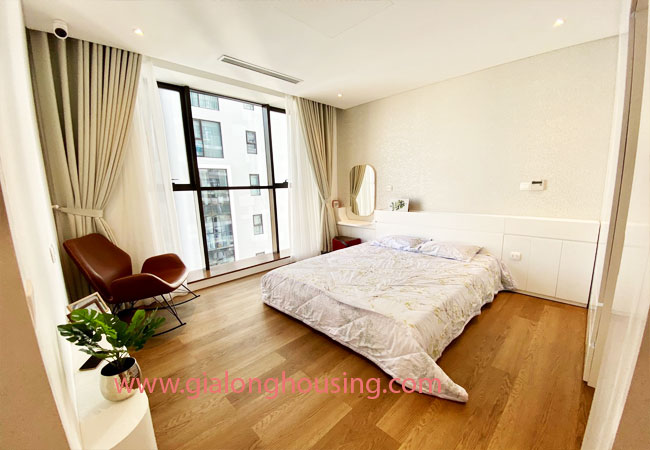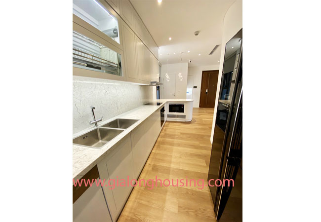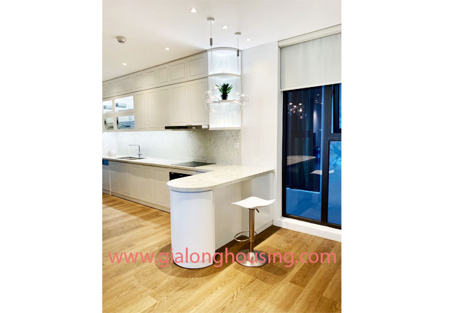 This is an apartment which is located in Sun Grand City Ancora Luong Yen. Constructed with 130 sqm, this apartment has 3 bedrooms, 2 bathrooms, a living room and a kitchen. It's handed over recently so everything in the apartment are brand-new and fully furnished.