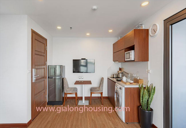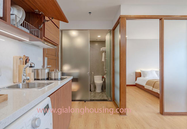 Size of the brand new studio apartment on Trich Sai street with size is 40m2, with 01 bathroom. It has living room combined with kitchen, separated with the bedroom by a glasses door.