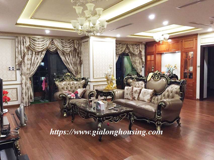 This luxurious apartment is located in high floor of Royal City urban area, 72 Nguyen Trai, Thanh Xuan district. The apartment is new and nice due to the classy equipment and smart design. The total area is 220 sq m, including 04 bedrooms and 03 bathrooms. Please contact us to visit it.