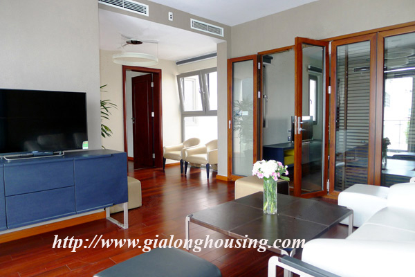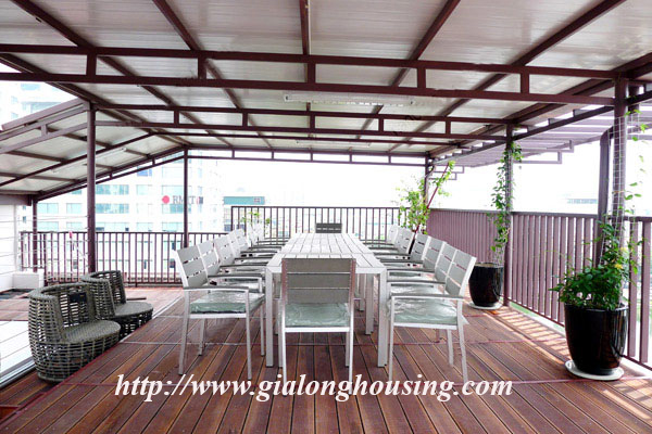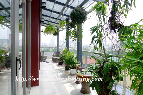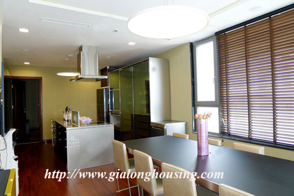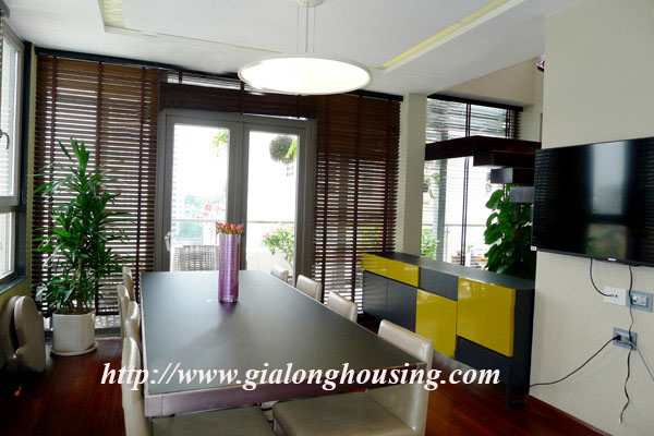 The duplex apartment is on top floor of one of the most beautiful buildings in Ba Dinh district. This luxury penthouse has 320 sqm for living area.