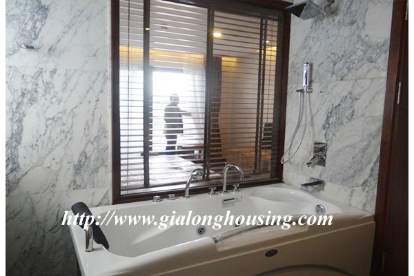 This is a very nice and modern apartment in Hoan Kiem district, Hanoi. All rooms are bright and spacious. The total area is 80 sq m with 01 bedroom and 01 bathroom. It also has a big living room, full facilities kitchen, a bathroom with big bathtub and a small balcony for relaxing, smoking or viewing the city.