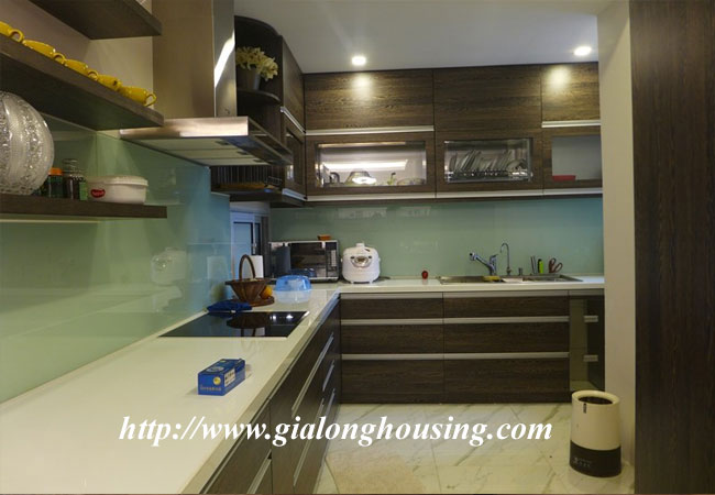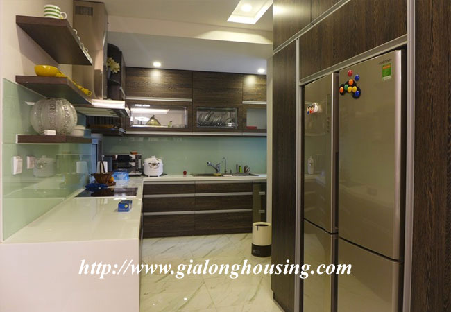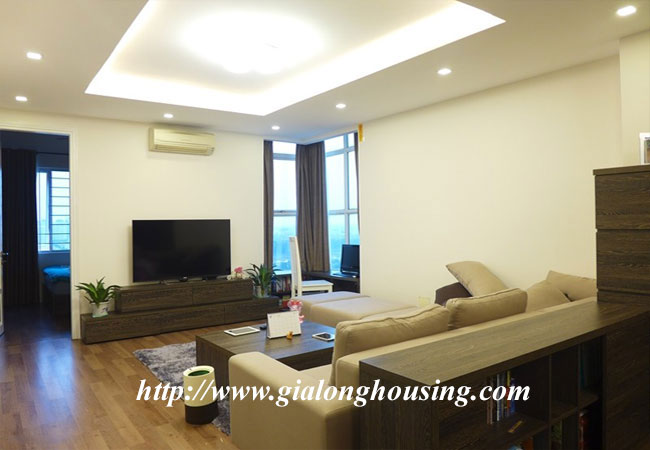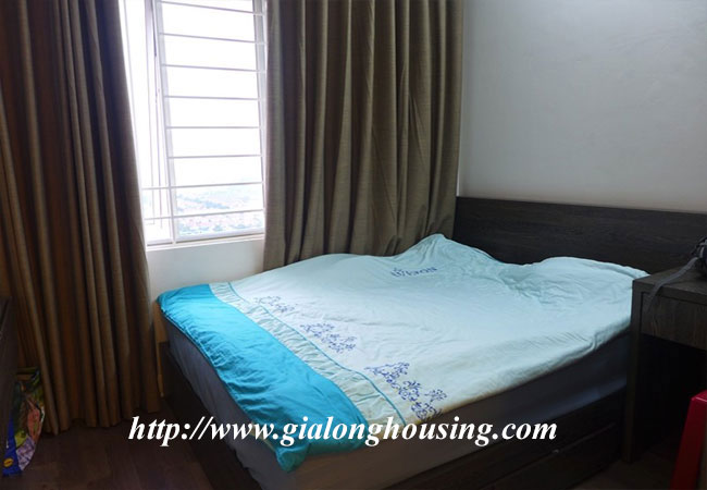 The total area of this apartment is 120 sq m, 03 bedrooms and 02 bathrooms. The apartment is suitable for long term contract with full of high quality furniture and equipment. The whole rooms are bright and nice due to balcony and big glass windows. It is located near the main road and new bridge, short distance to Noi Bai airport.