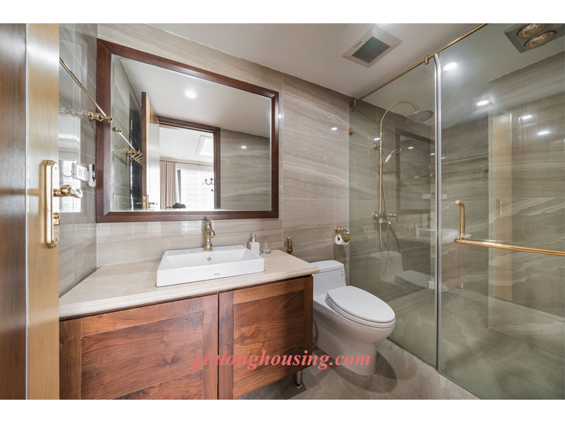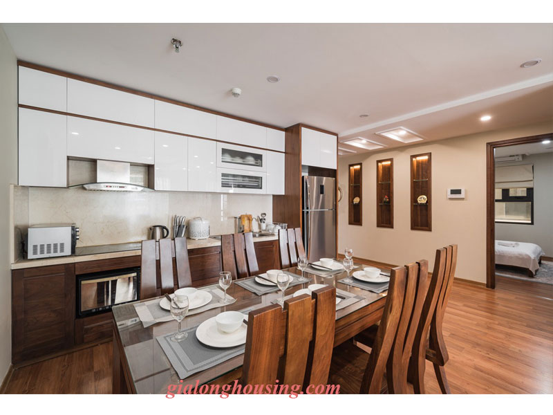A nice apartment for rent in central Tay Ho district. The property has a total area of 88 sqm with 2 bed 2 bath layout. The living room comes with a balcony facing Fraser Suite lake. Modern style interior. D’. Le Roi Soleil is one of the modernest condo in Quang An area with mall, swimming pools, gym, cafe, etc. Favorable location. Please contact us to rent this 2 bedroom apartment in D’. Le Roi Soleil.