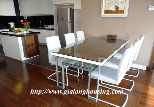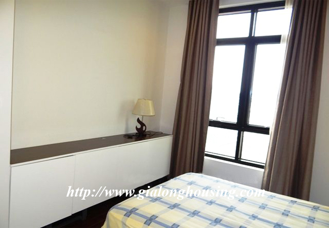 An available apartment is in Lancaster building, 20 Nui Truc street, Ba Dinh dsitrict. The total area is 145 sq m with 03 bedrooms and 03 bathrooms. The apartment is nice and neat with modern and high quality furniture. The whole apartment is bright with many windows that bring the fresh air and natural light into. The building has security, swimming pool, gym and car access.