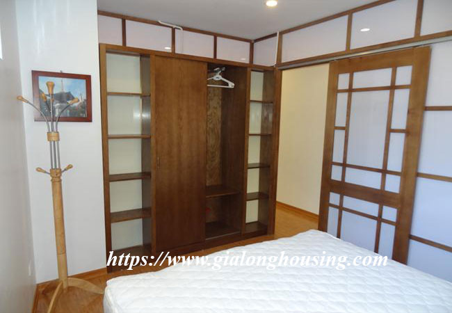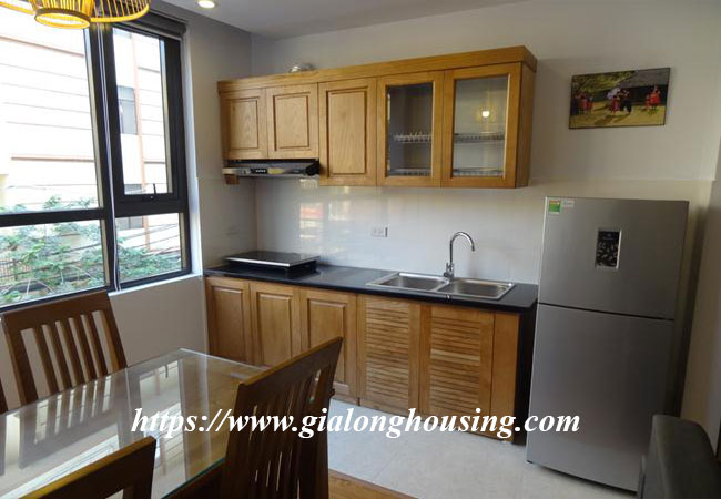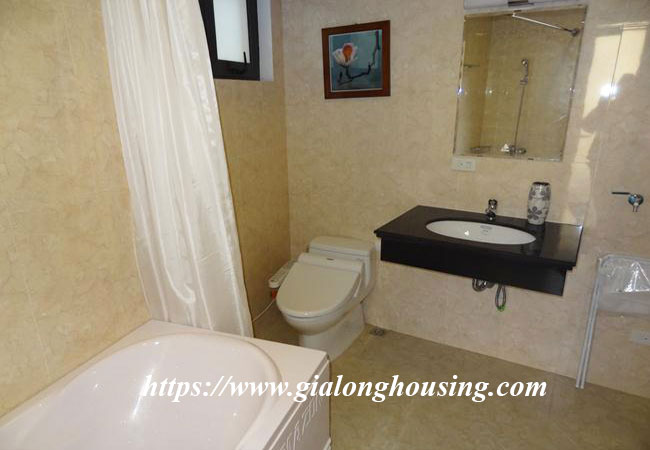 This is a brand building located in Dao Tan area. The building offers high quality services for both foreign and domestic tenants: Japanese TV channels (NHK),cable TV, wireless internet, tap water, cleaning service. The surrounding area is quiet and peaceful, walking distance to Lotte, Daewoo hotel, Japanese and Australian embassy. The apartment has 01 bedroom and 01 bathroom in 45 sq m. It is fully furnished and the tenants can move in immediately.