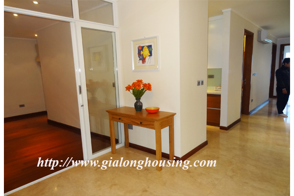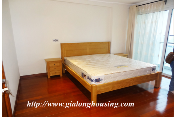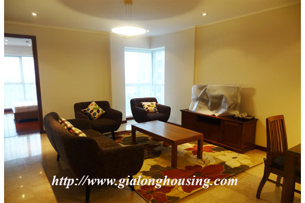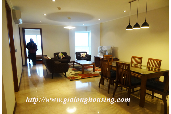 A nice three bedrooms apartment for rent in L1 Block, Ciputra, Hanoi. The living area is 114 sqm combining 3 bedrooms, 2 bathrooms with standing shower cabin and bathtub, separated laundry area.The apartment is designed mixed floor between wood and marble make it more modern