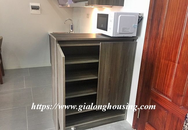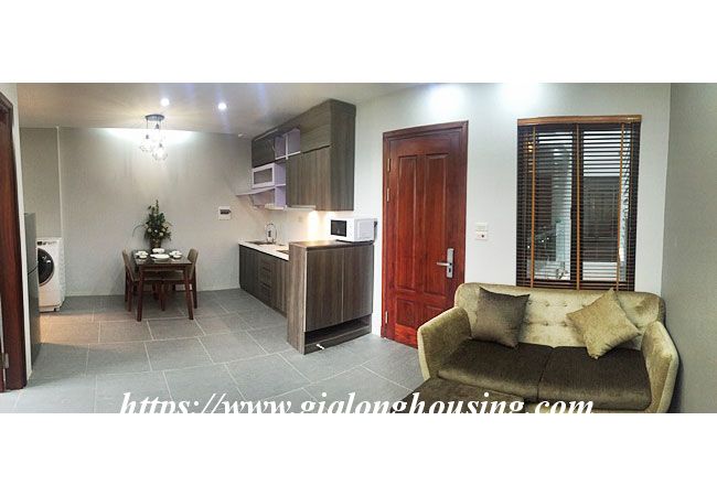 This brand new serviced apartment is located in Trinh Cong Son street, facing to West lake and lotus pond. The total area is 50 sq m, this will be your next home in Hanoi with full of furniture and equipment. There are 01 bedroom, 01 bathroom and 01 living room combined to a kitchen. Please contact us to visit this new apartment today.