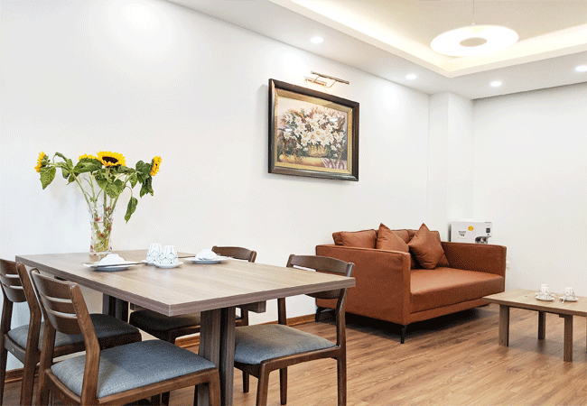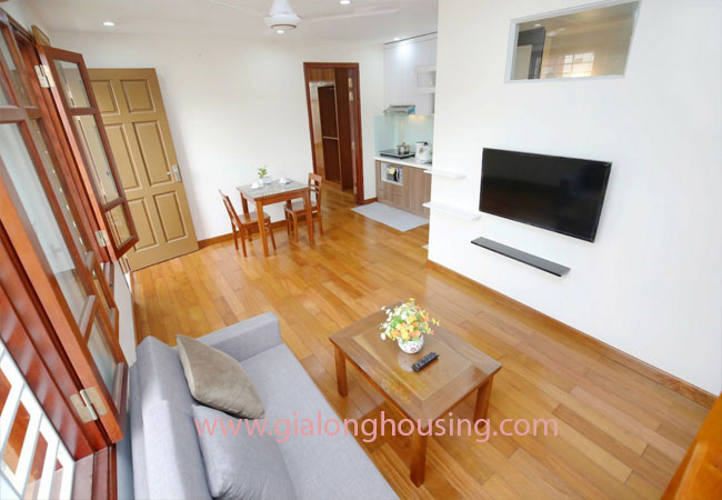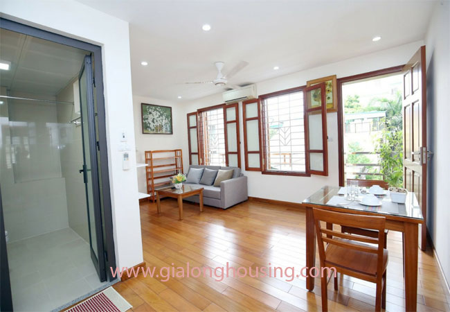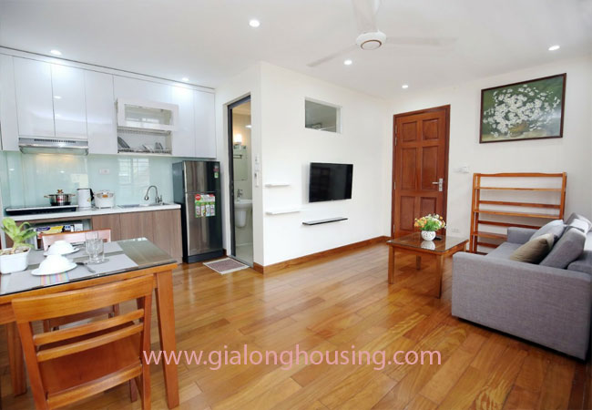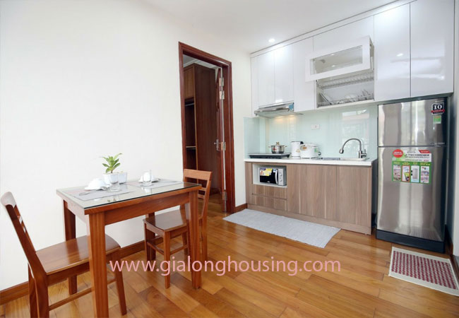 Are you living 01 bedroom apartment for rent in Van Phuc street, Ba Dinh District, Hanoi? This is 01 bedroom apartment will suitable. It is a modern apartment with usable area of 50 m2. It has full of useful furniture and electric equipment that make your life ever comfortable. You will find working space, living space and kitchen space You will also get surprised by the modern bathroom with bath tub.