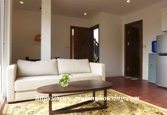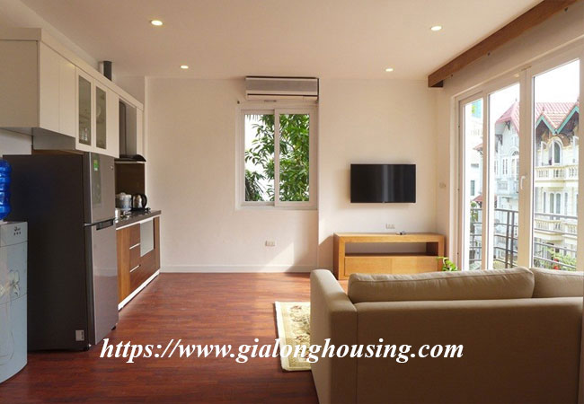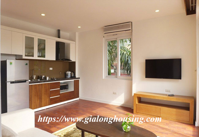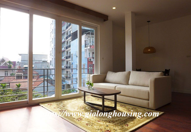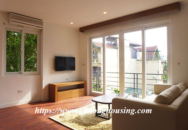 The new apartment is located in Tay Ho district, Hanoi. The total area is 60 sqm, with 01 bedroom and 01 bathroom. With the Western design, the whole apartment is bright and full of light from balcony and glass windows. All furniture and equipment are brand new, modern and convenient for the tenant to stay in both short and long term.