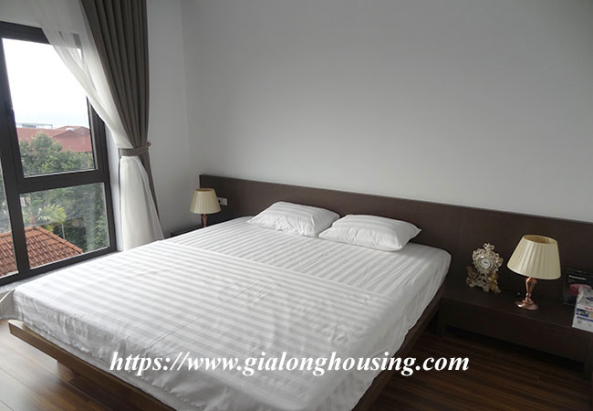 New built building has just opened recently. All furniture and equipment are new and nice. The total area is 100 sq m with 02 bedrooms and 02 bathrooms. The whole apartment is bright due to the big glass windows and small balcony. The apartment is located in very quiet alley, walking distance to West lake and cafes.