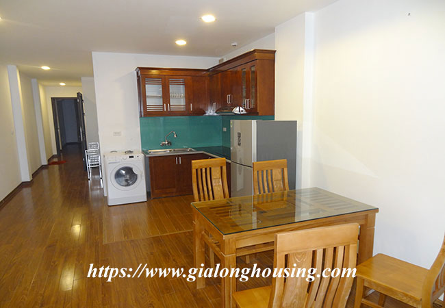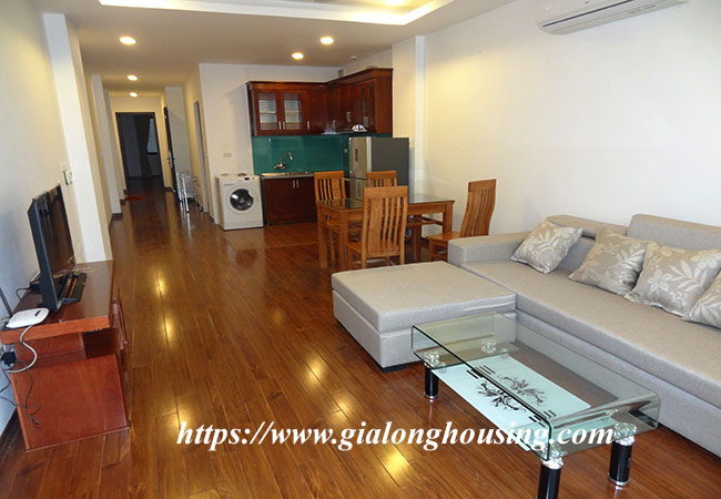 Large furnished apartment is available for rent. The building is located at lane 1 Au Co now it is Tu Hoa street. The total area is 80 sq m, included 01 bedroom and 02 bathroom. All the rooms is bright and nice due to the large glass windows. The furniture is new and modern, suitable for both short and long term leasing contract.