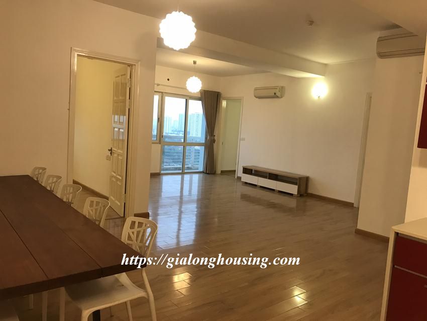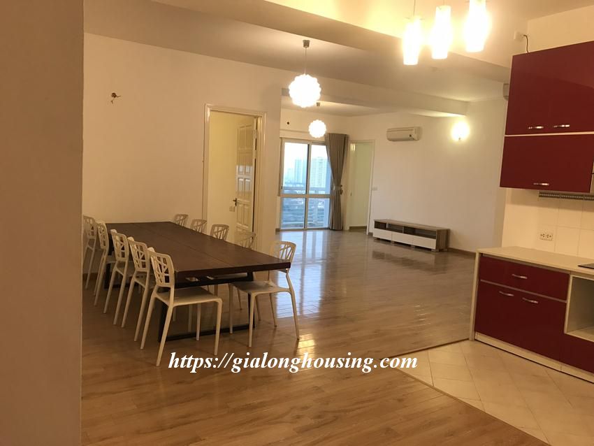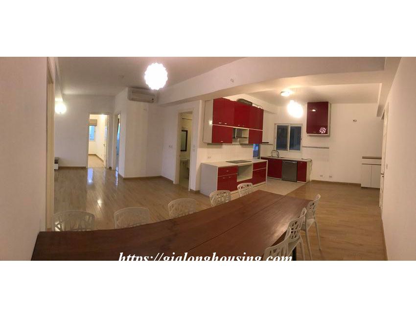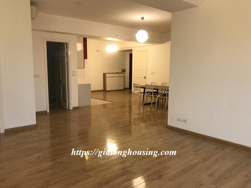 This high floor apartment has just been renovated recently with wooden floor, some basic furniture such as wardrobe, dining table and chairs, bathroom facilities. The total area is 154 sq m, including 04 bedrooms and 03 bathrooms. The apartment is full of sunlight and fresh air. The building has swimming pool, security 24/24 and reception.