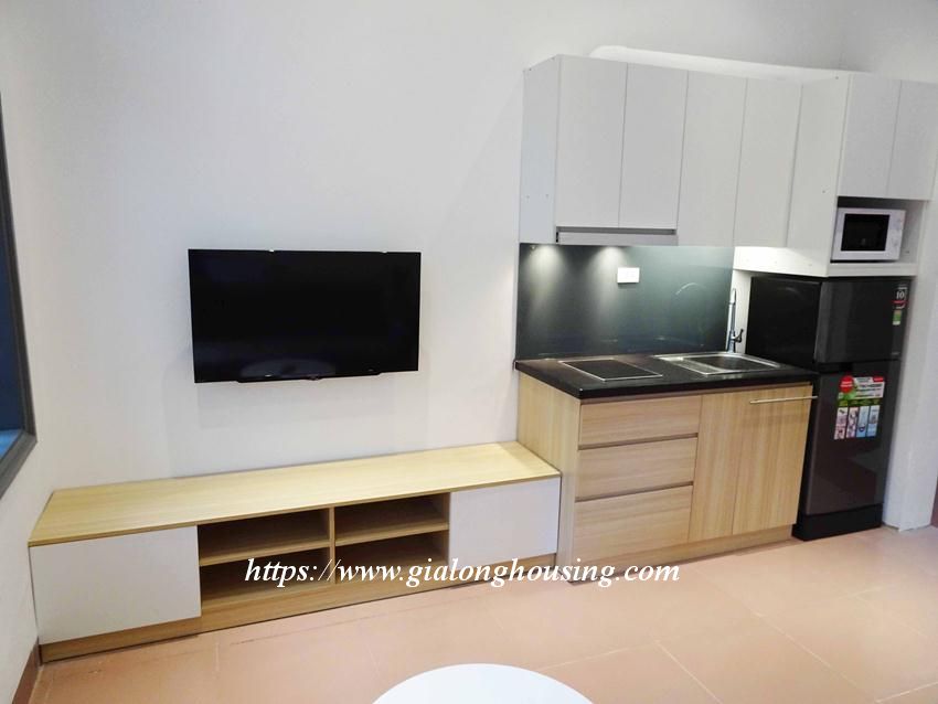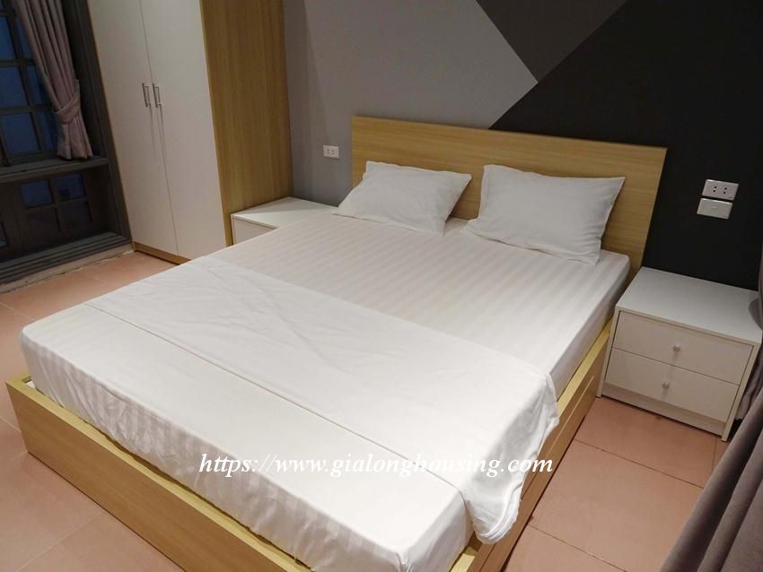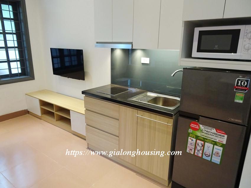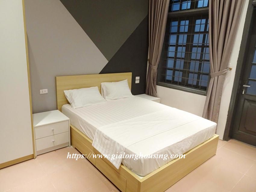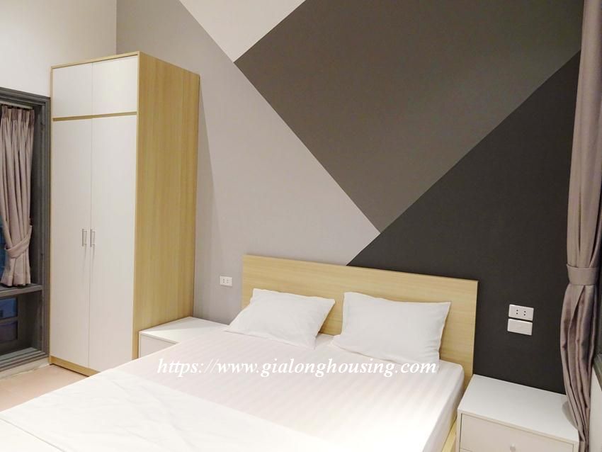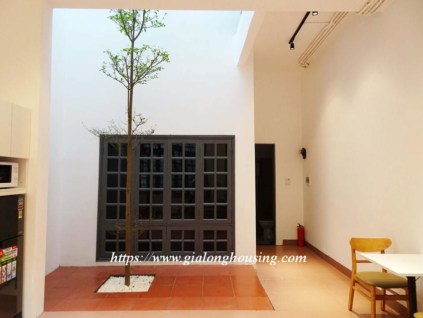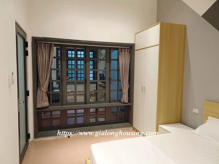 This brand new apartment is located in the 1st floor of a serviced building in Ngoc Ha. The total area is 50 sq m, 01 bedroom and 01 bathroom. Although it is located on the low floor, the apartment is bright due to the unique design. The rent includes: cable TV, wireless internet and tap water.