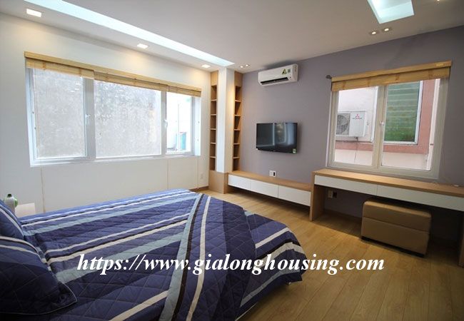 Located in walking distance to Lotte Tower and Japanese embassy, this building is a good choice for you to stay in long term. The total area is 40 sq m, including 01 bedroom and 01 bathroom. The kitchen and the living room is separated by a glass wall that allows the natural light to go through. The rent includes cable TV, wireless internet and tap water.