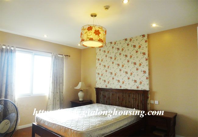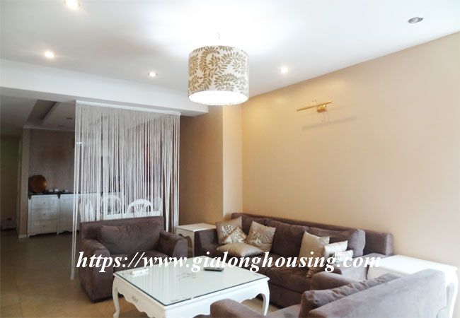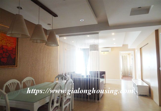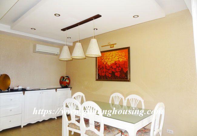 This apartment is located in high floor of E building, Ciputra urban area. The apartment has 3 bedrooms and 02 bathrooms, suitable for long term contract. The apartment is full of natural light and fresh air due to the big glass windows and balconies. The urban area has swimming pool, biggest golf court in Hanoi, security 24/24.