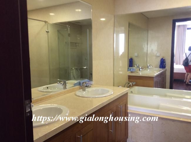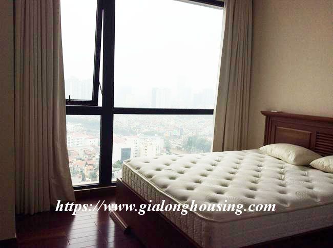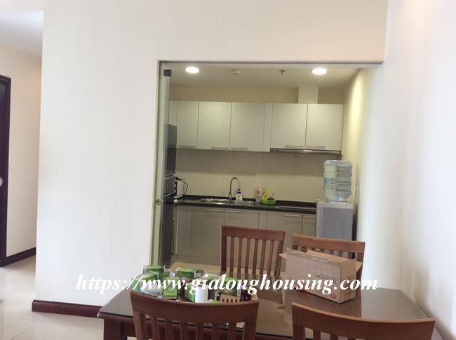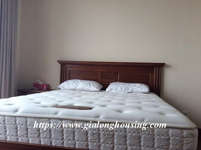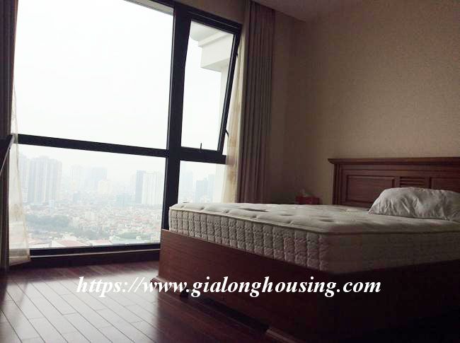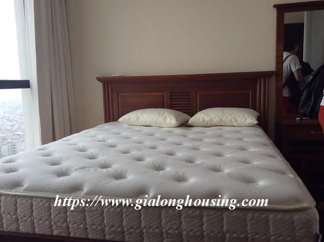This 2 bedroom apartment is located in high floor with good view. The total area is 133 sq m. The living room and the kitchen is combined with the dining area. All furniture and equipment are modern and comfortable for tenants to use in long term. The building is in the complex of one of the most modern and beautiful urban areas in Hanoi. There are underground shopping center, cinema, water park, supermarket, restaurant, four - season pool.